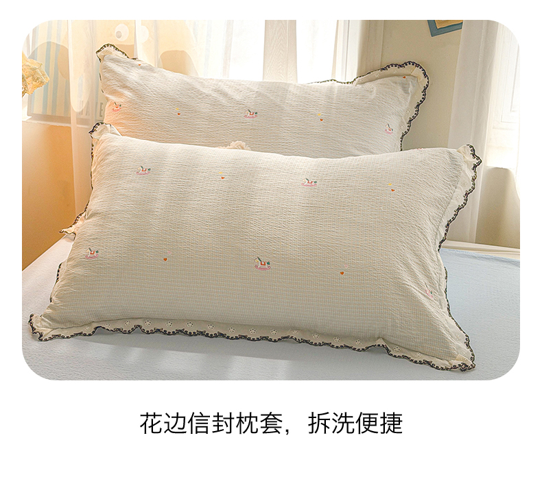 当前位置: 91家纺网 > 商品网购 > 被子 > 夏被 > 招财星家纺 2026新款A类全棉花边云感双层纱大豆纤维夏被四件套夏被夏凉被空调被(带质检报告买家秀) 花边款-格子木马-蓝