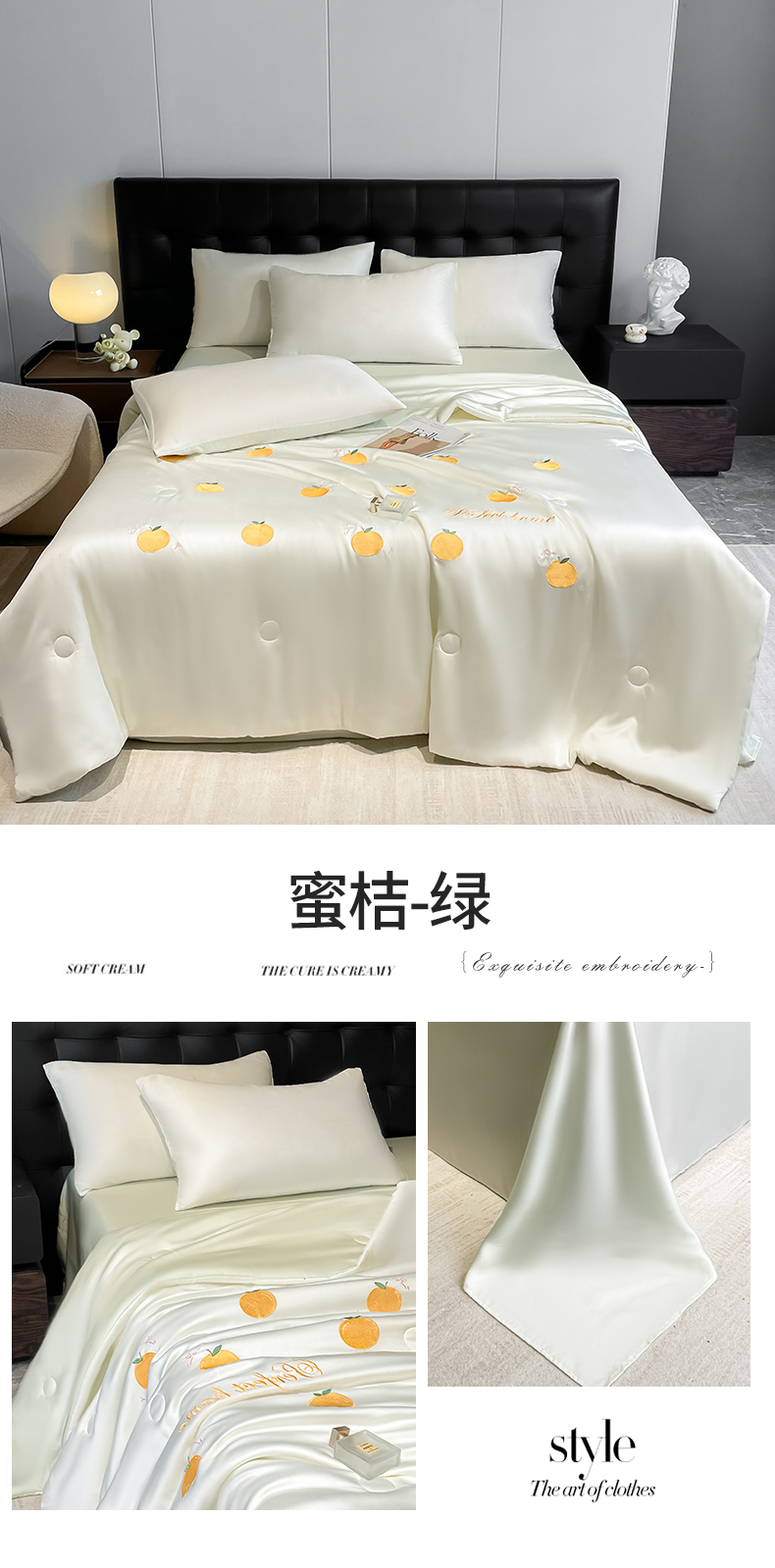 当前位置: 91家纺网 > 商品网购 > 床品套件 > 四件套 > 其它四件套 > 美澳家纺 2026新款凉感水洗冰丝真丝刺绣双拼单夏被三件套四件套 蜜桃