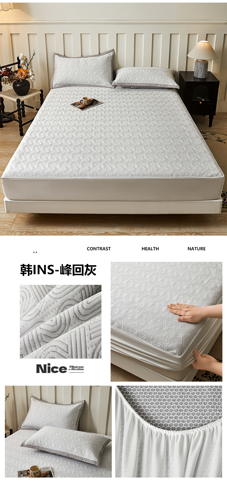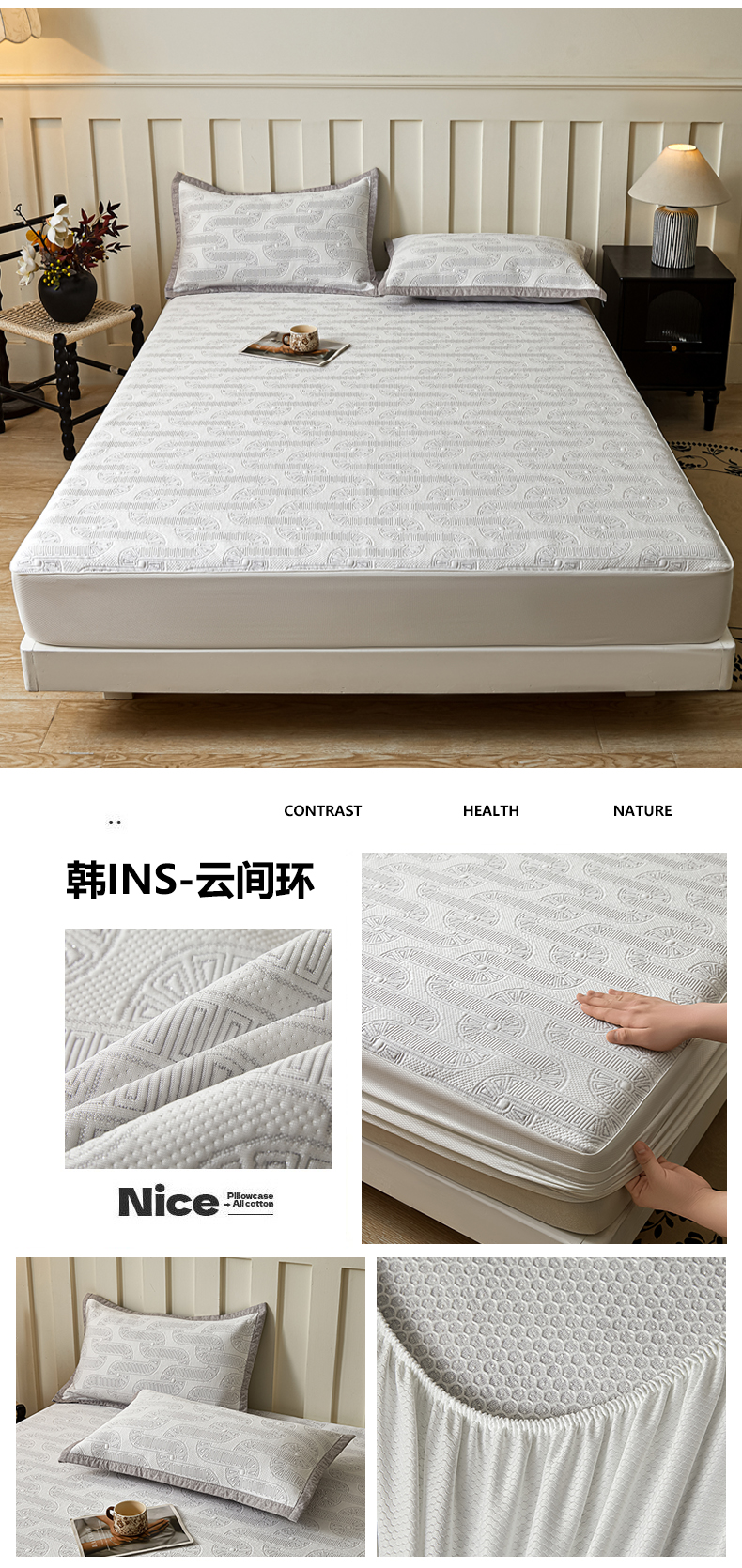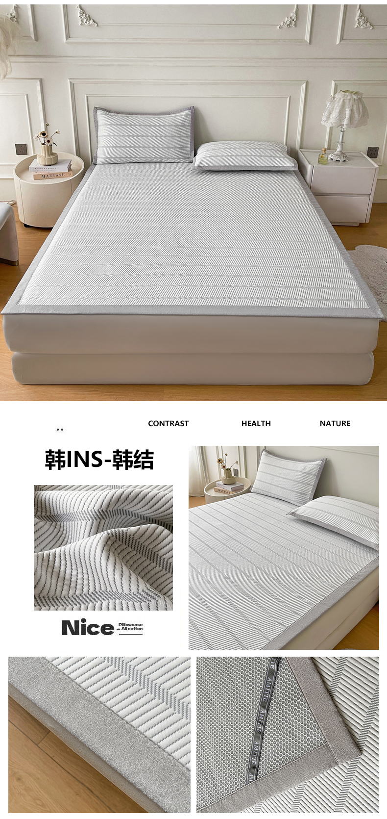 当前位置: 91家纺网 > 商品网购 > 床上用品 > 凉席 > 其他凉席 > 慕木家纺 2026新款高端三明治硅胶复合PE100%乙纶提花冰豆豆凉席空调席韩版INS系列(提供买家秀) 韩INS-云间环床笠款