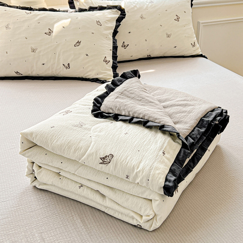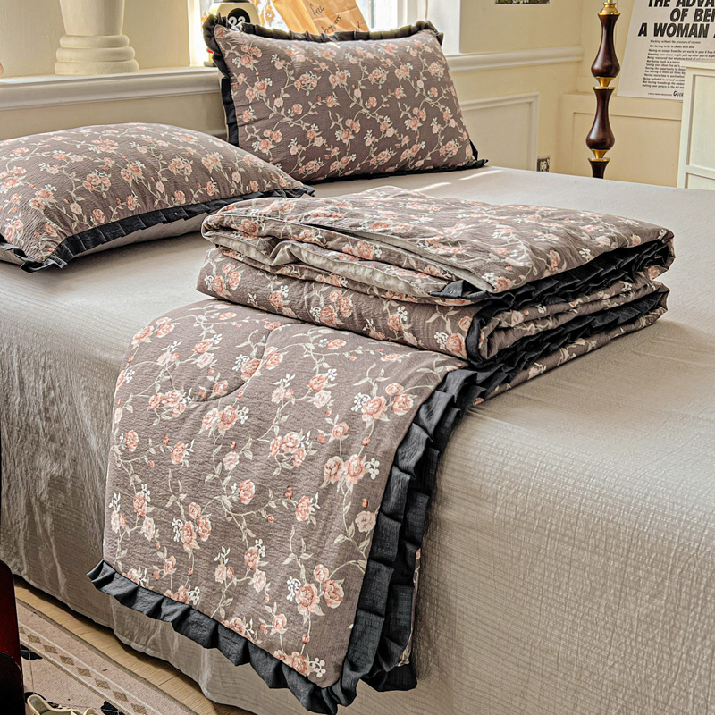 人人爱家纺 2026新款赫本风花边夏被夏凉被空调被 豆蔻
