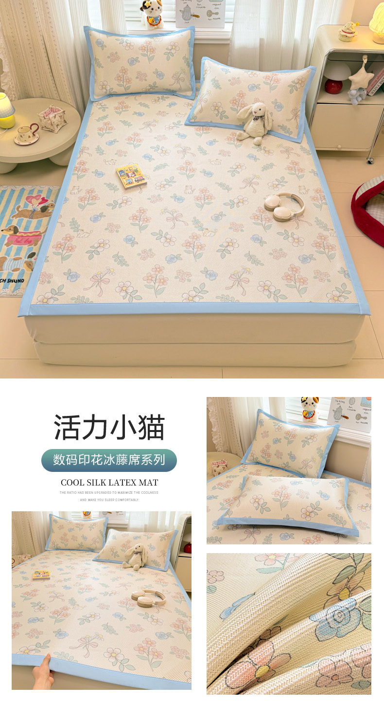 (总)慕尚家纺 2026新款清新凉感冰藤席床笠款,小福气,春日小兔,福禄小狗,蝴蝶结,活力小猫,开心约克,马踏祥光,梦幻紫花,魔法小熊,情人草,碎冰蓝,天使星仔,顽皮兔,小猫耶,小毛球,星星宝宝,星星熊,紫气东来