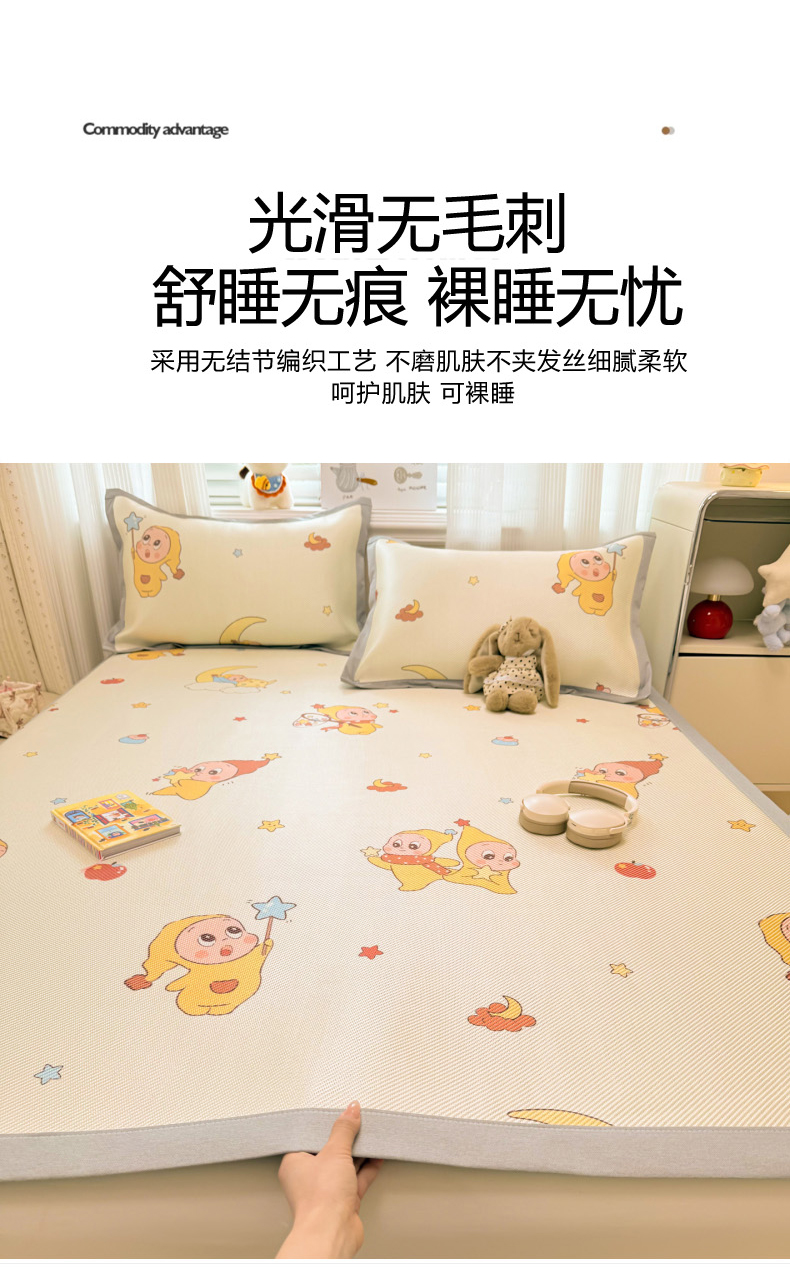 (总)慕尚家纺 2026新款清新凉感冰藤席床笠款,小福气,春日小兔,福禄小狗,蝴蝶结,活力小猫,开心约克,马踏祥光,梦幻紫花,魔法小熊,情人草,碎冰蓝,天使星仔,顽皮兔,小猫耶,小毛球,星星宝宝,星星熊,紫气东来