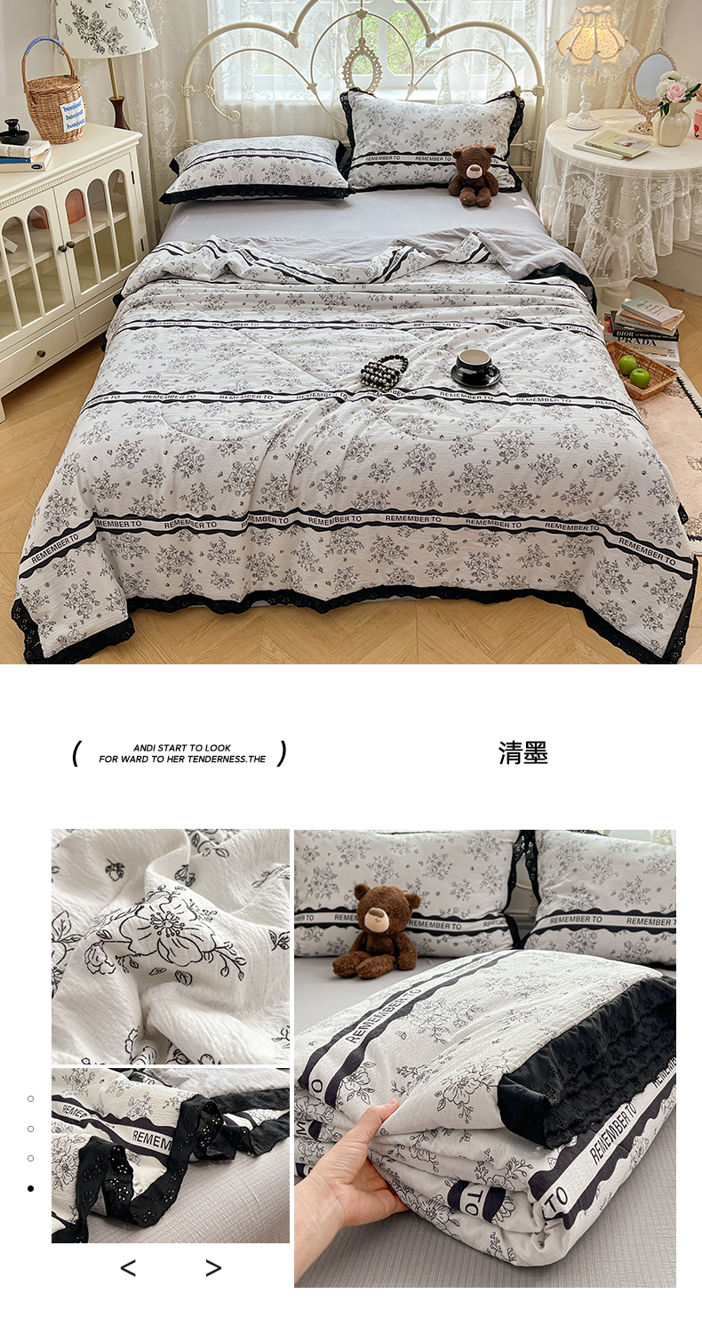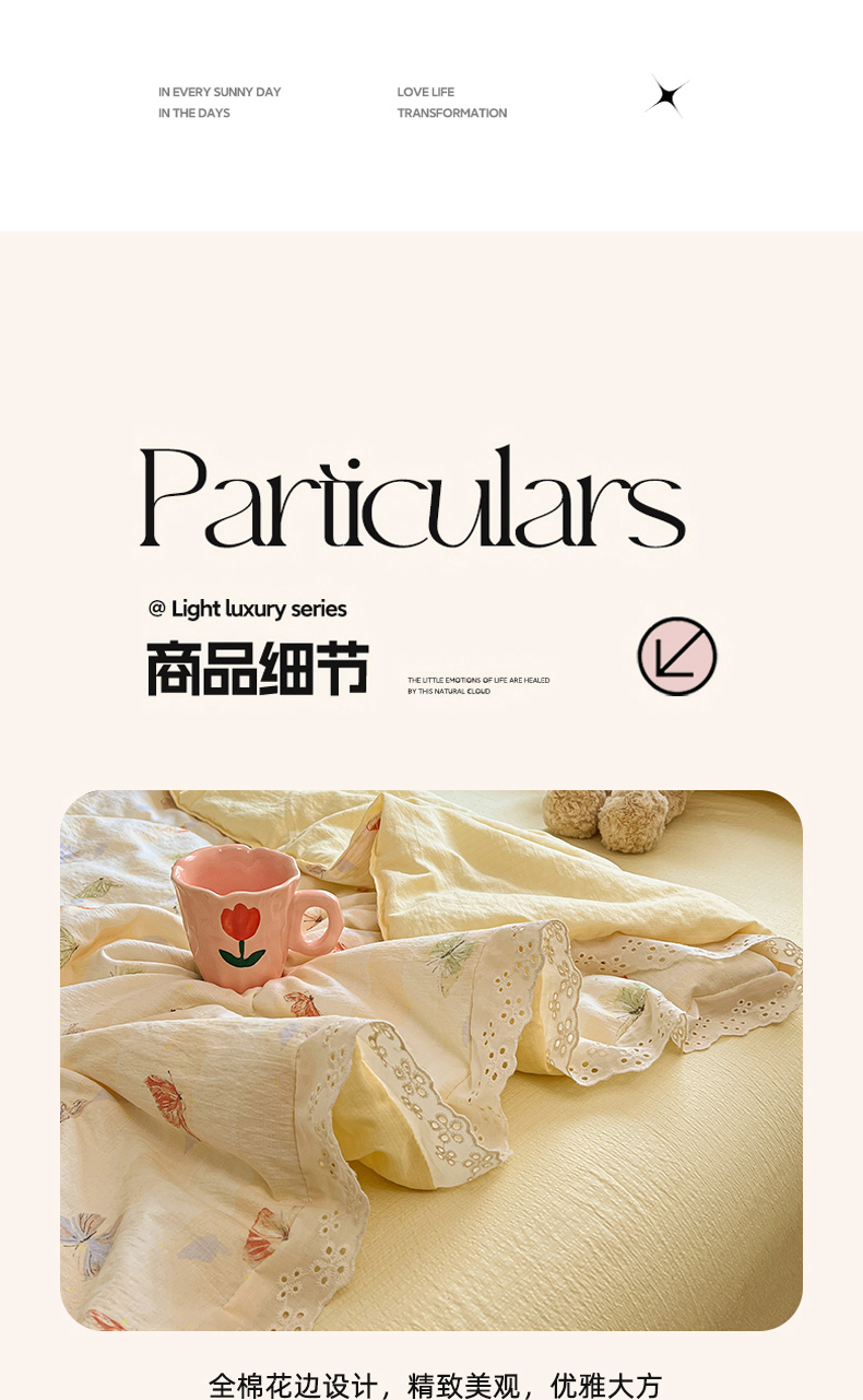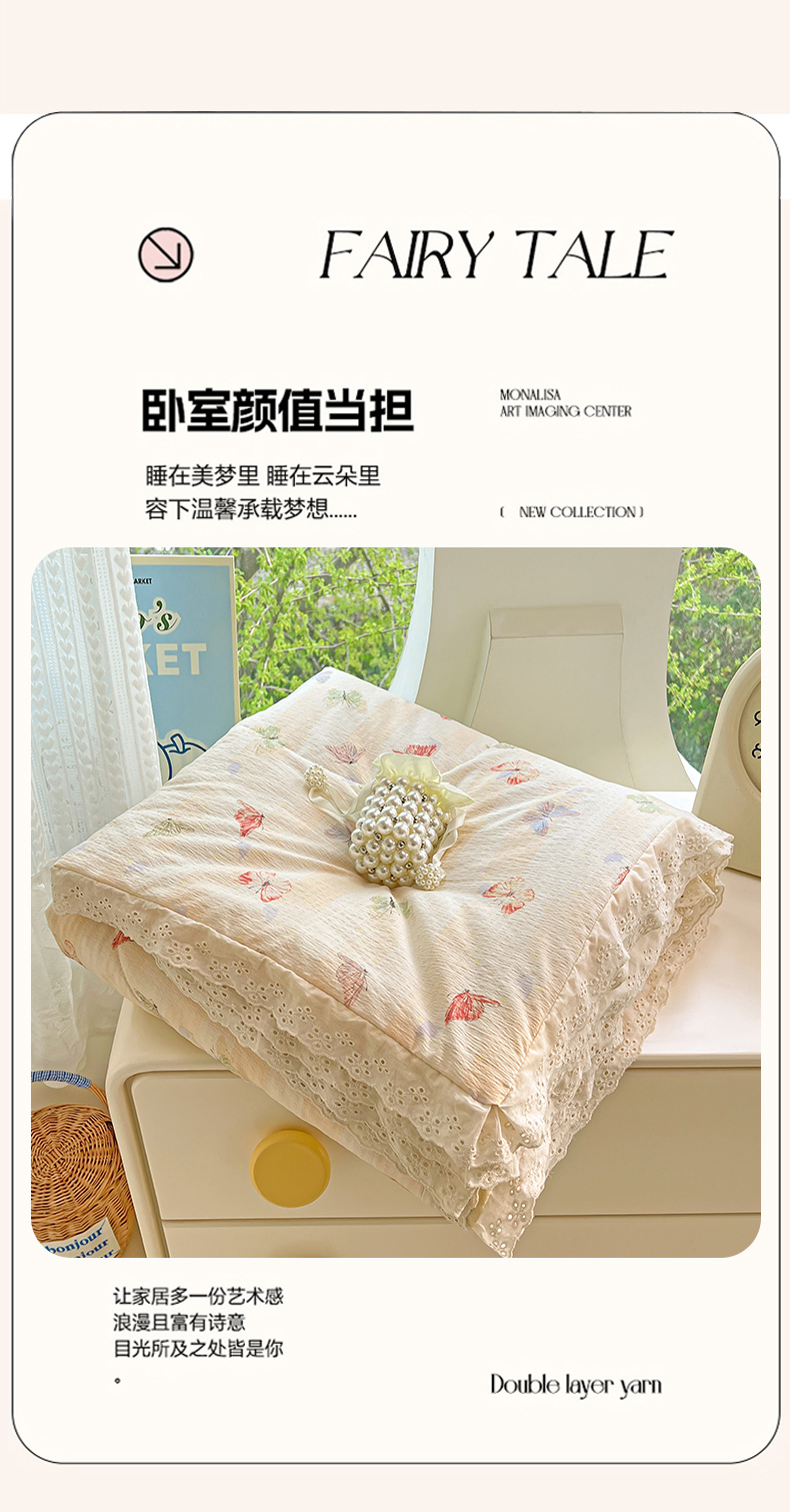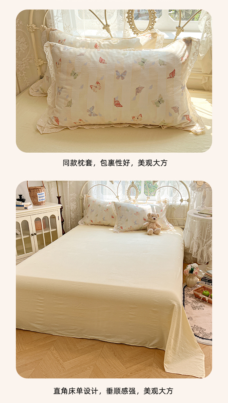 商品名称:优尚佳生活馆 2026新款云感皱皱纱全棉花边款夏被四件套 蝶儿飞