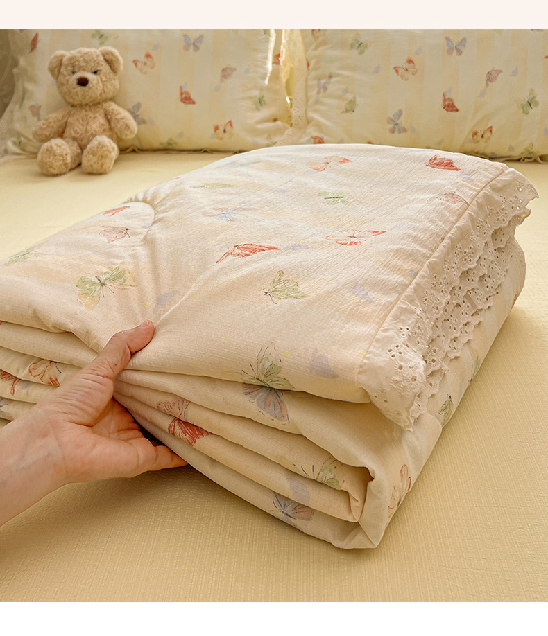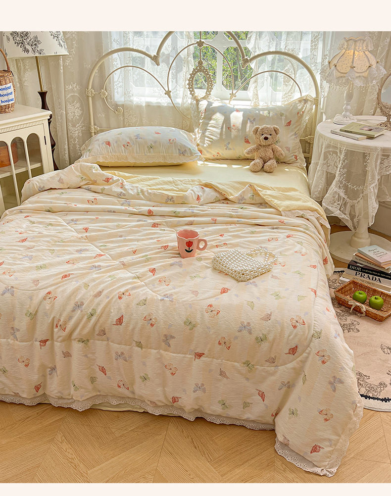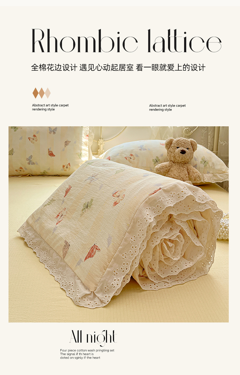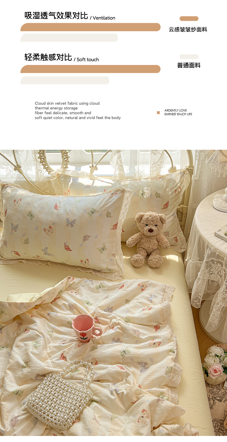 优尚佳生活馆 2026新款云感皱皱纱全棉花边款夏被四件套 蝶儿飞