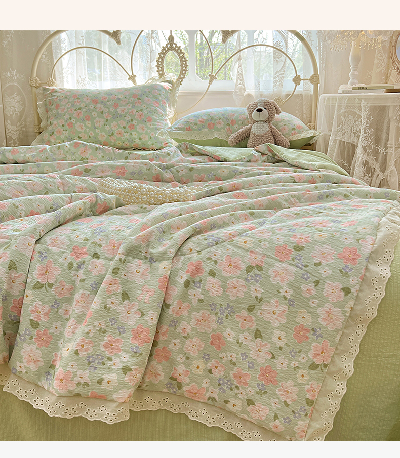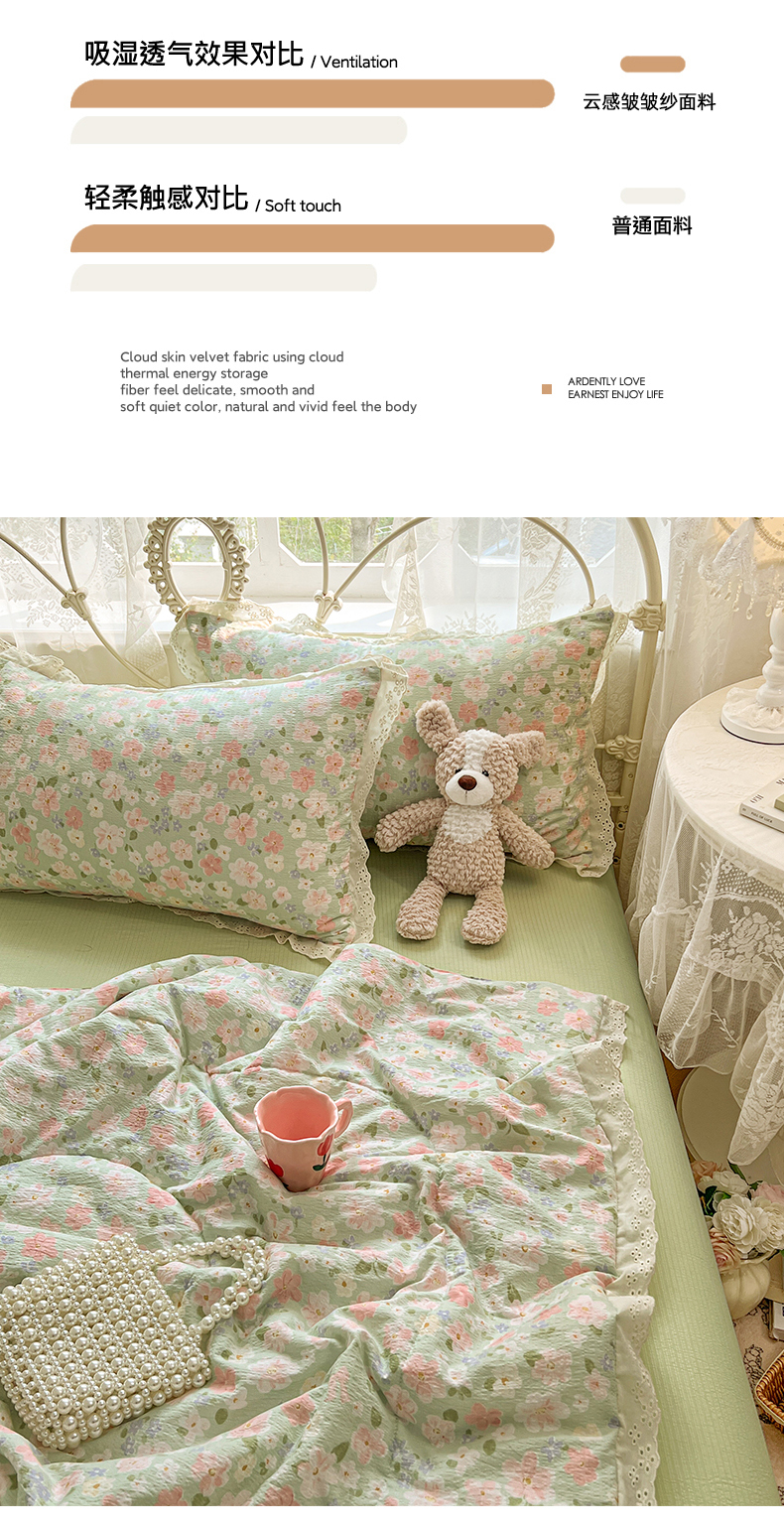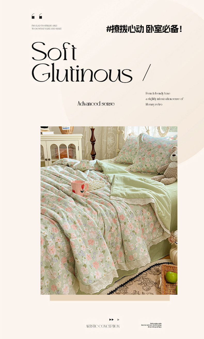 优尚佳生活馆 2026新款云感皱皱纱全棉花边款夏被四件套 知夏