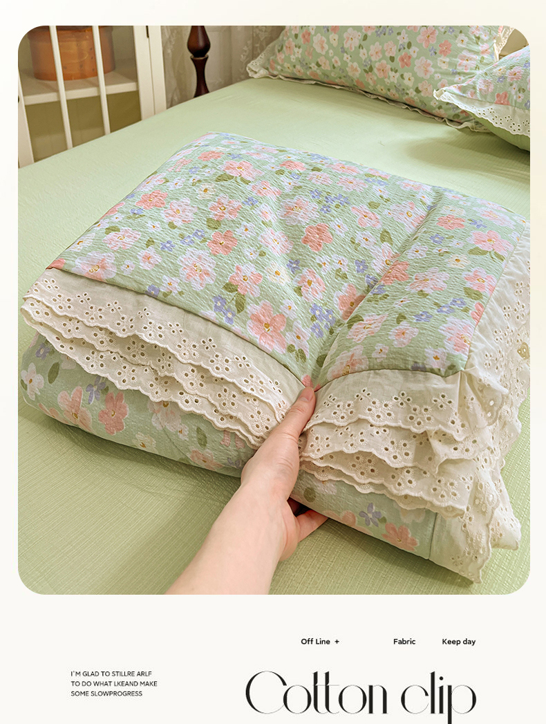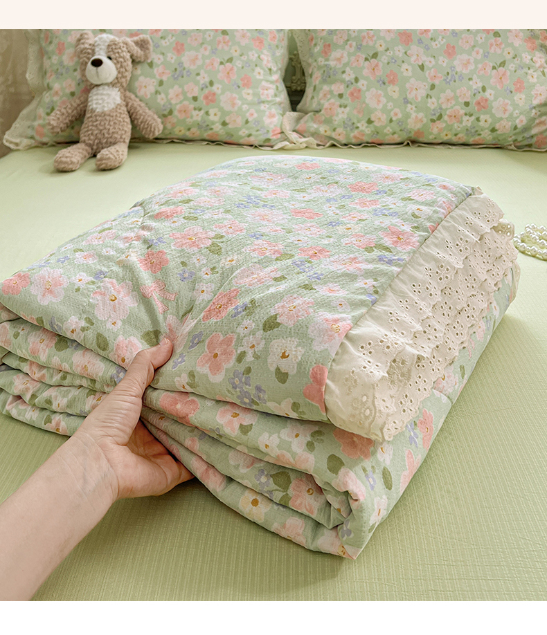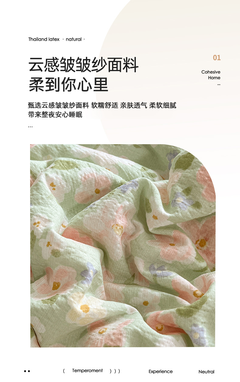 商品名称:优尚佳生活馆 2026新款云感皱皱纱全棉花边款夏被四件套 知夏