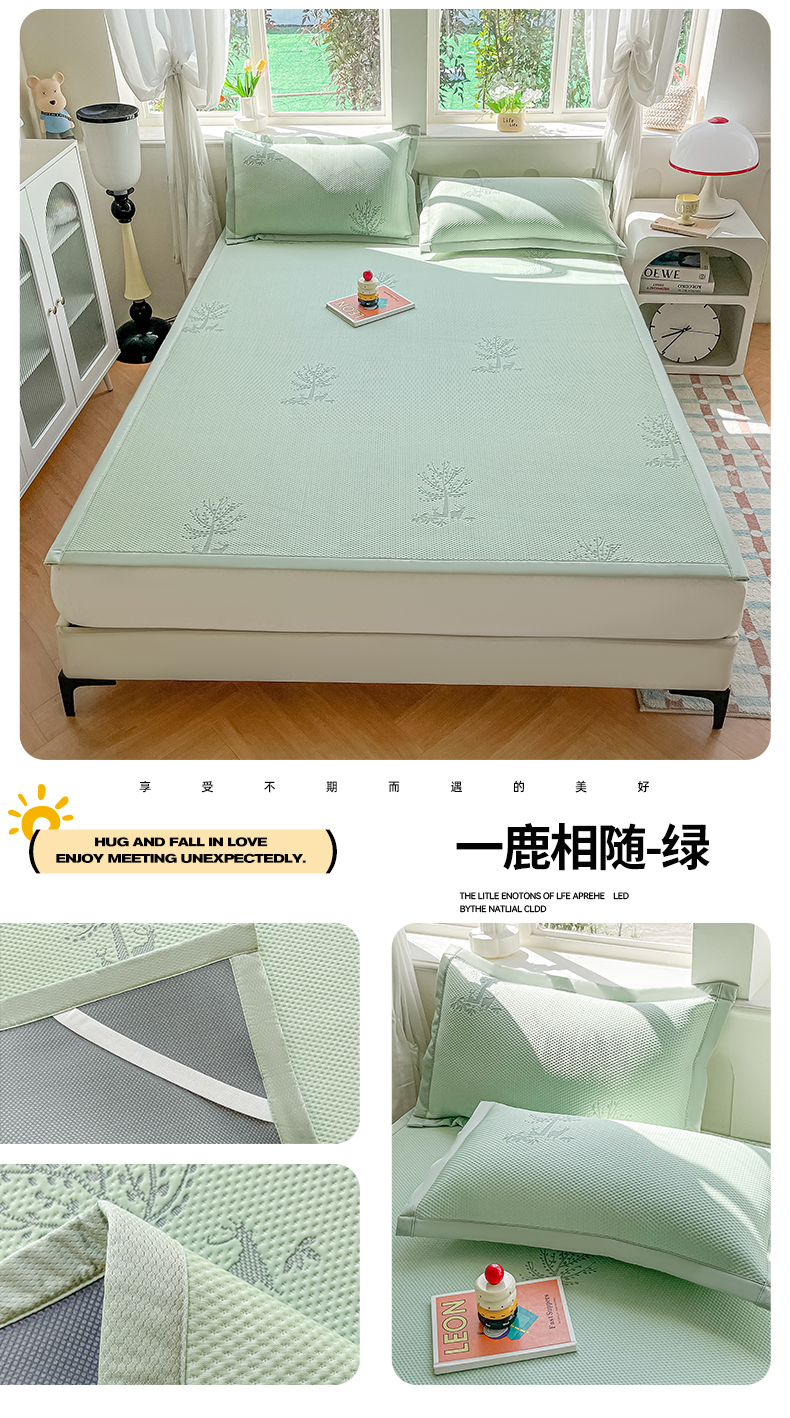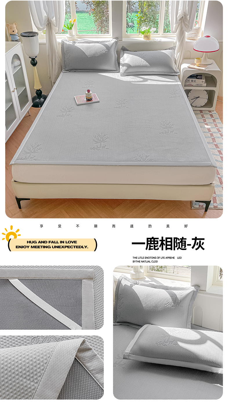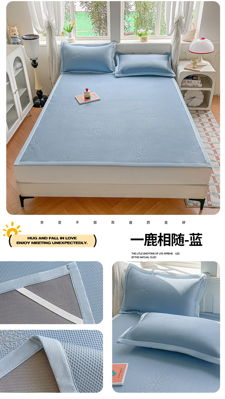 当前位置: 91家纺网 > 商品网购 > 床上用品 > 凉席 > 凉席套件 > 梓之赫 2026新款凉感冰豆豆凉席平铺款复合三明治三件套-一鹿相随 一鹿相随-蓝