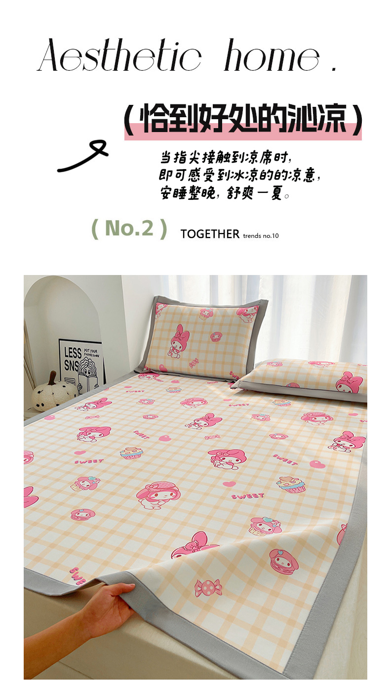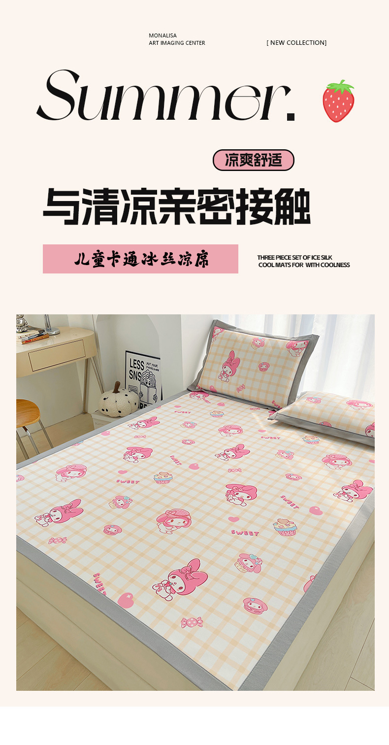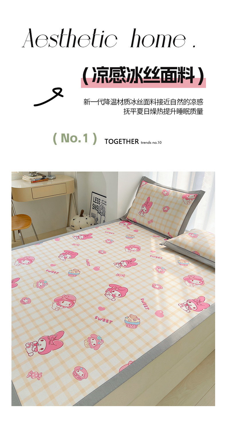 商品名称:云恋家纺 2026正版授权小版冰丝席卡通凉席三件套可折叠水洗软席子儿童单双人凉感空调席子 小版-格格美乐蒂