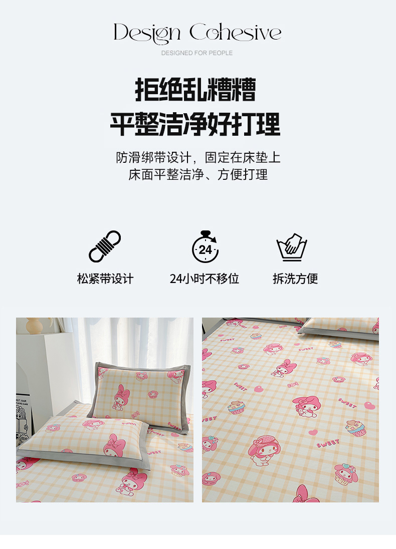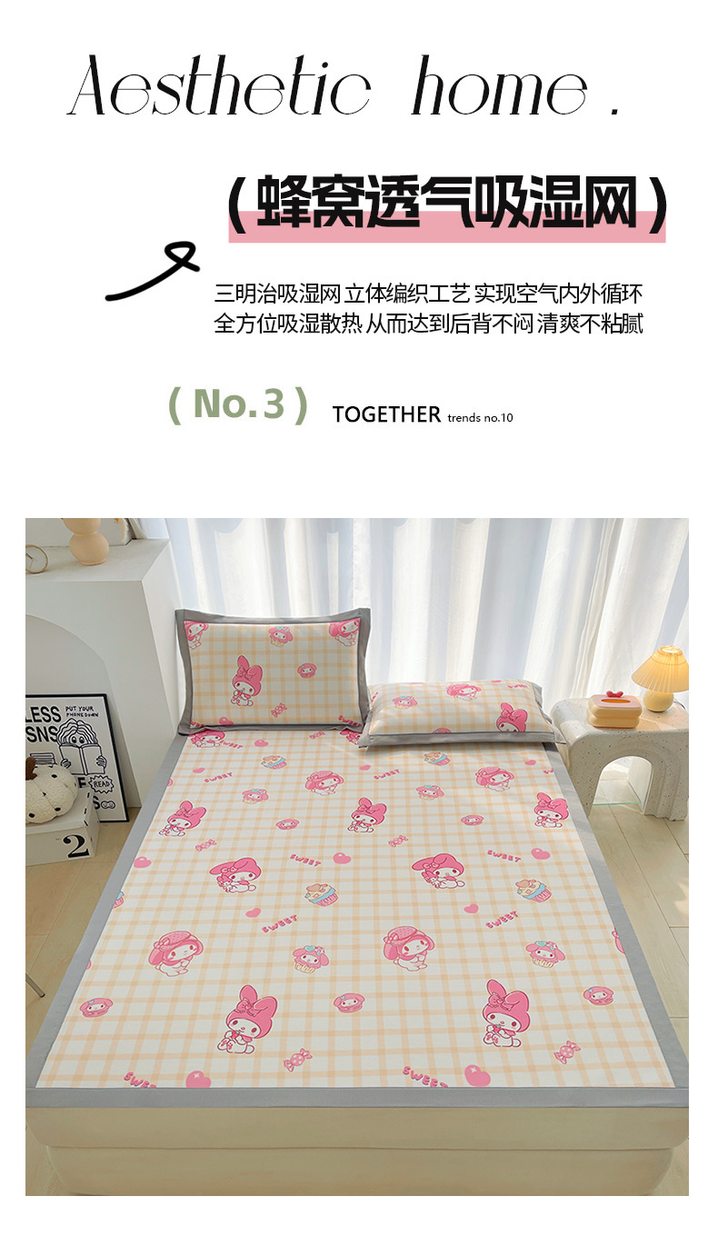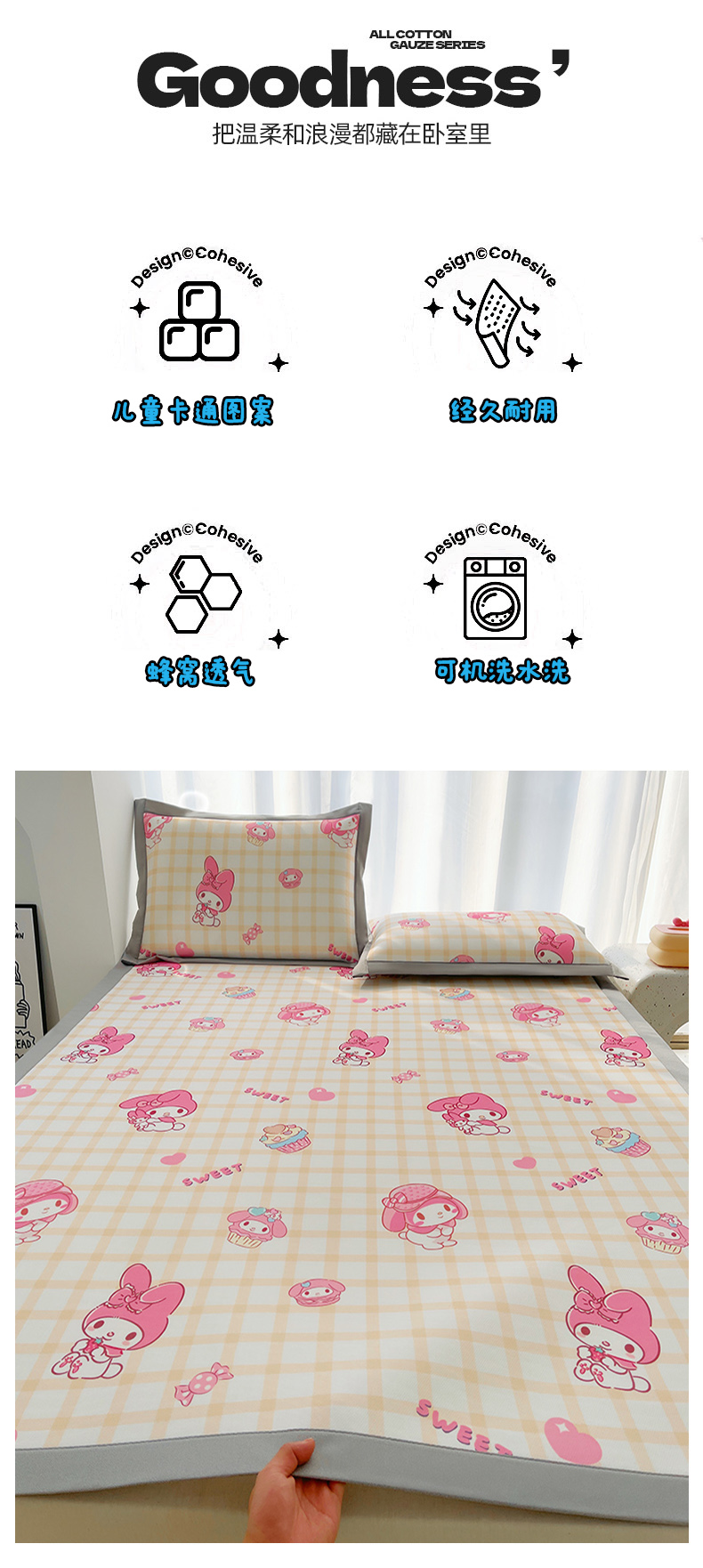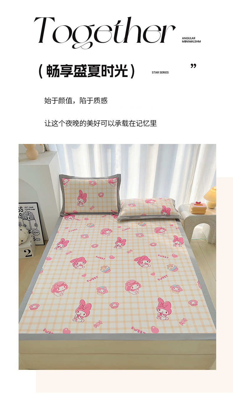 商品名称:云恋家纺 2026正版授权小版冰丝席卡通凉席三件套可折叠水洗软席子儿童单双人凉感空调席子 小版-格格美乐蒂