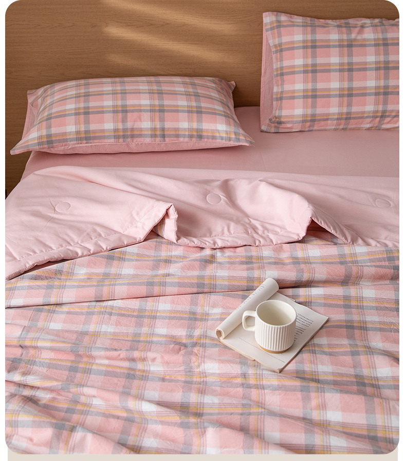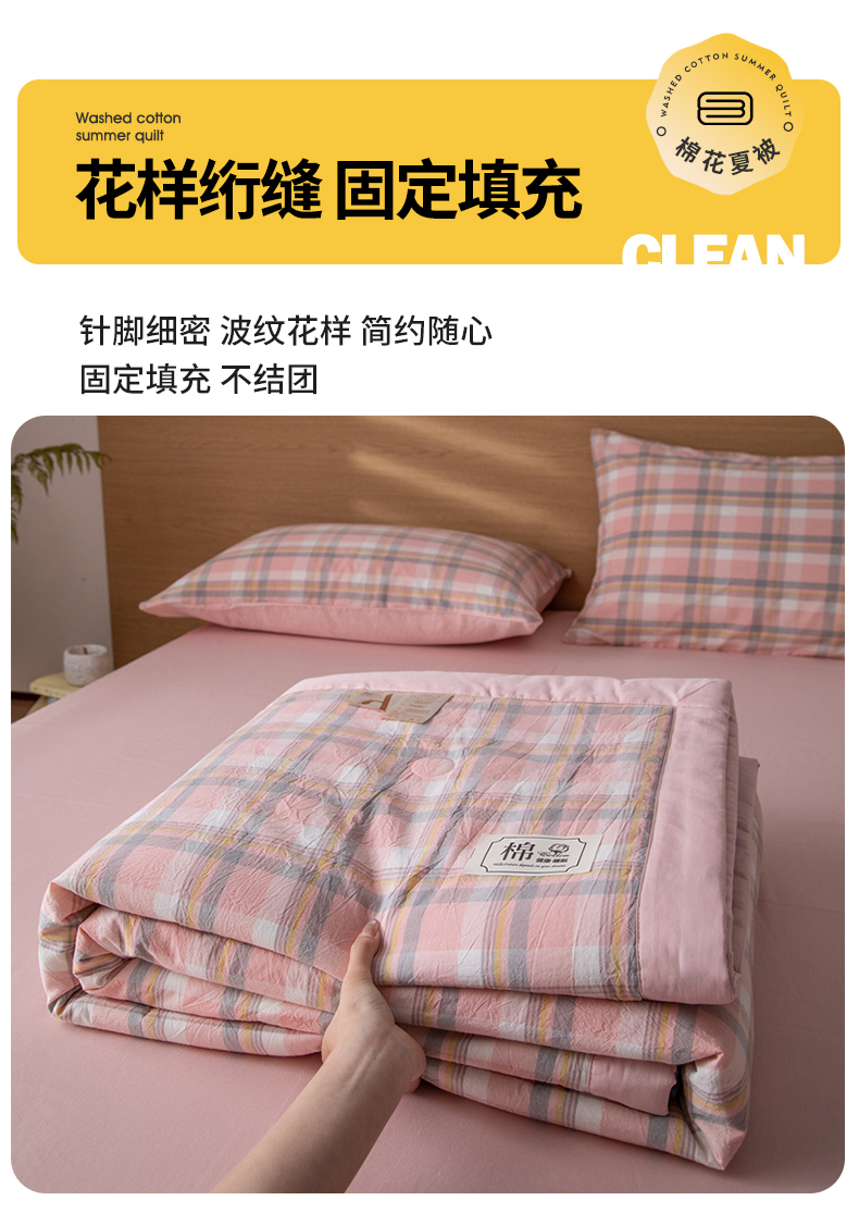 几禾 2026春夏新款色织水洗棉棉花夏被夏凉被空调被 简夕粉