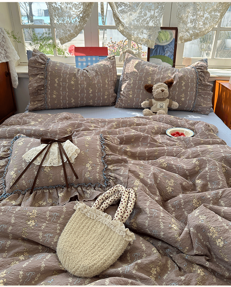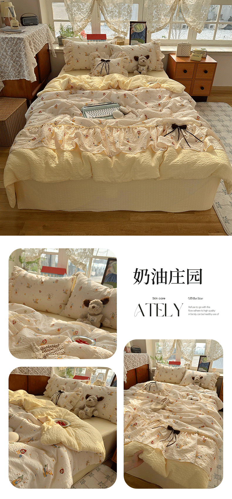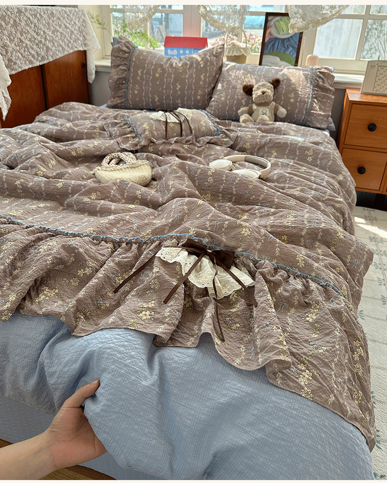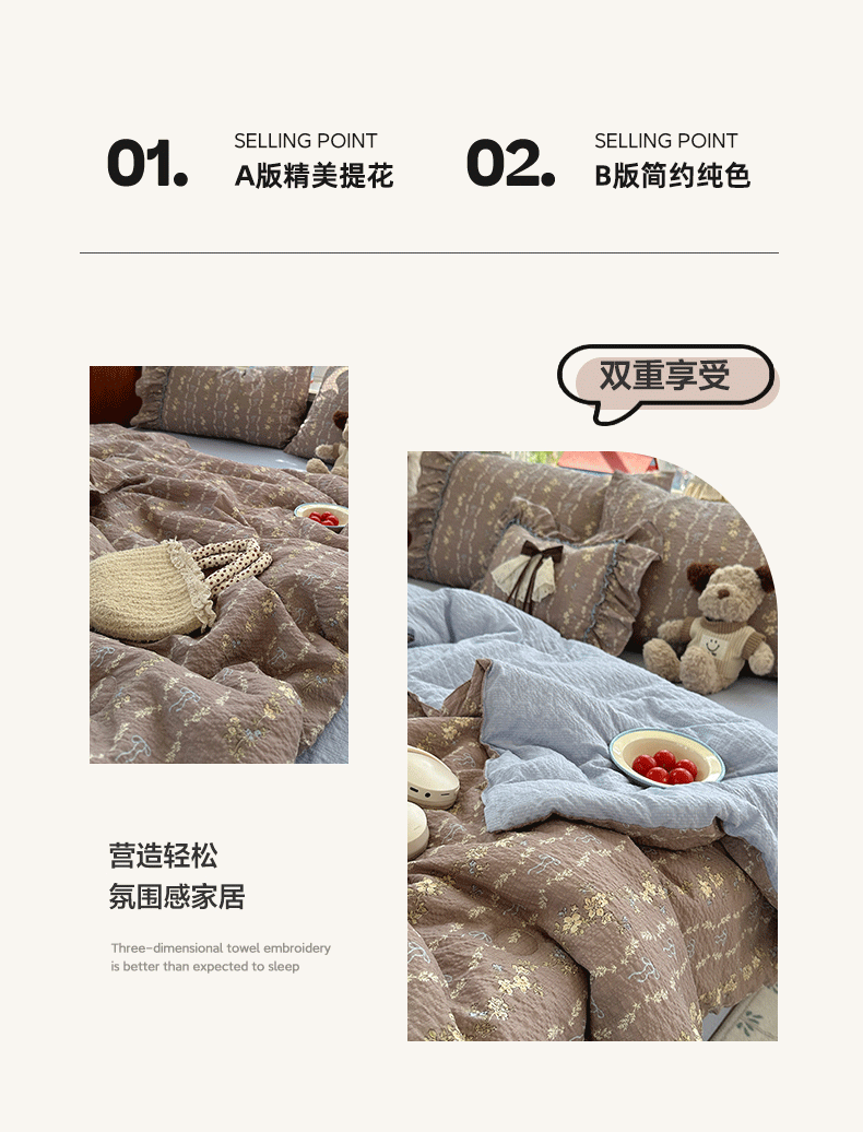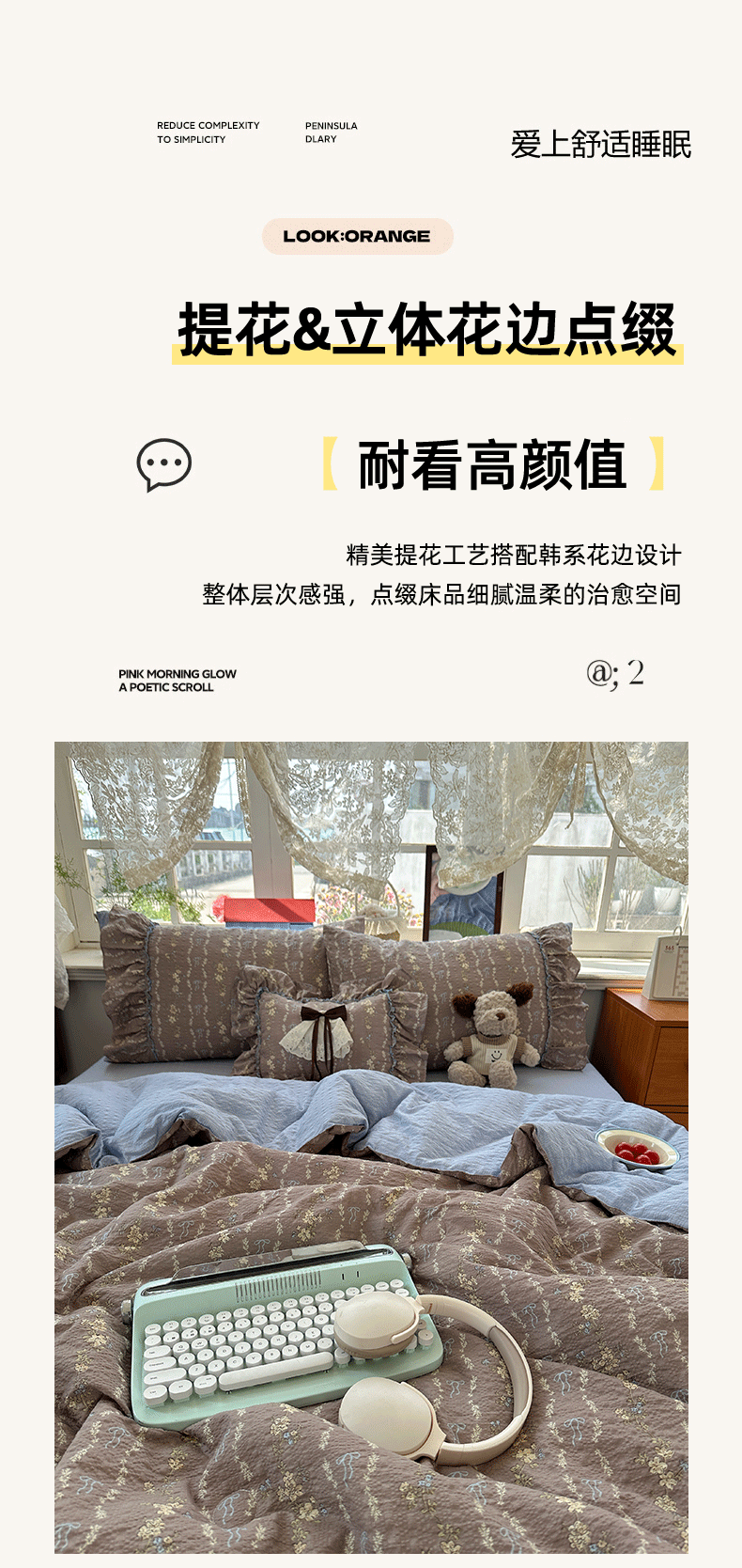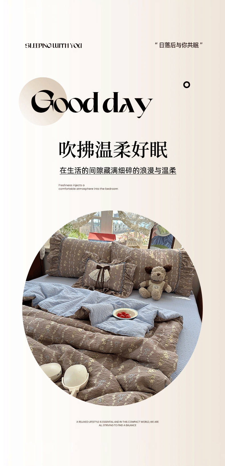 当前位置: 91家纺网 > 商品网购 > 床品套件 > 四件套 > 化纤普通四件套 > 栩裕纺织 2026新款提花泡芙棉立体花边简约韩系夏被-夏被三件套四件套 暖棕清蓝