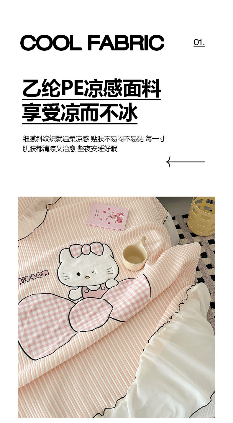 商品名称:吾欢心 2026新款卡通绣花高克重乙纶PE凉席席子三件套床裙款 组合图仅供展示不可下单