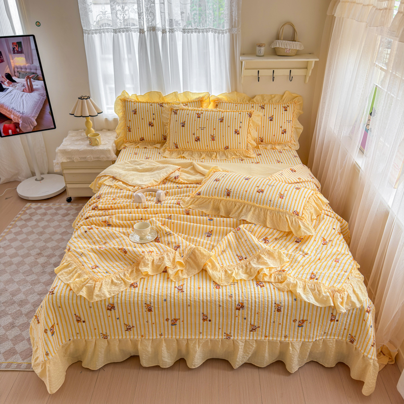 (总)2026新款云感皱皱纱全棉花边款夏被四件套,百福兰,春天里,春晓,豆蔻,蝴蝶梦,可颂,兰黛,山野栀子,素颜,太妃糖,微凉薄荷,心动,遇见,芝士奶酪,紫爱心,紫苏,白茶绿,初恋,蜡笔画,莱茵河畔,桃花诺,小黑兔,春不晚,春日小熊,可颂,陌上花开,莫奈,若欢-绿,若欢紫色,舒芙蕾,田园拾趣-黄,兔小姐,郁金香小兔,波点小兔粉,波点小兔兰,花园兔,情人节,山野栀子,十里桃花粉,十里桃花紫,舒芙蕾,太妃糖,夏天,运动健将熊, 白月光,缤纷几何,格格西高地,海盐蓝小格,黎漫,木槿绿,奶油泡芙,欧若拉,桃夭,甜茶,小晴天,芋泥紫小格,紫色蝴蝶结