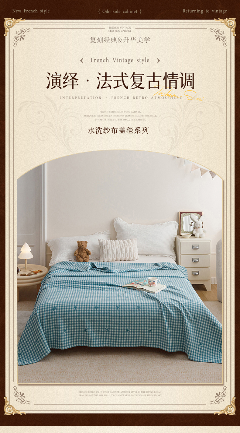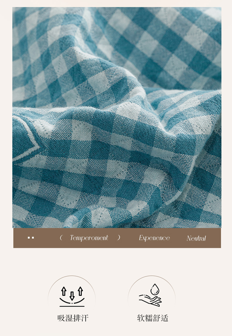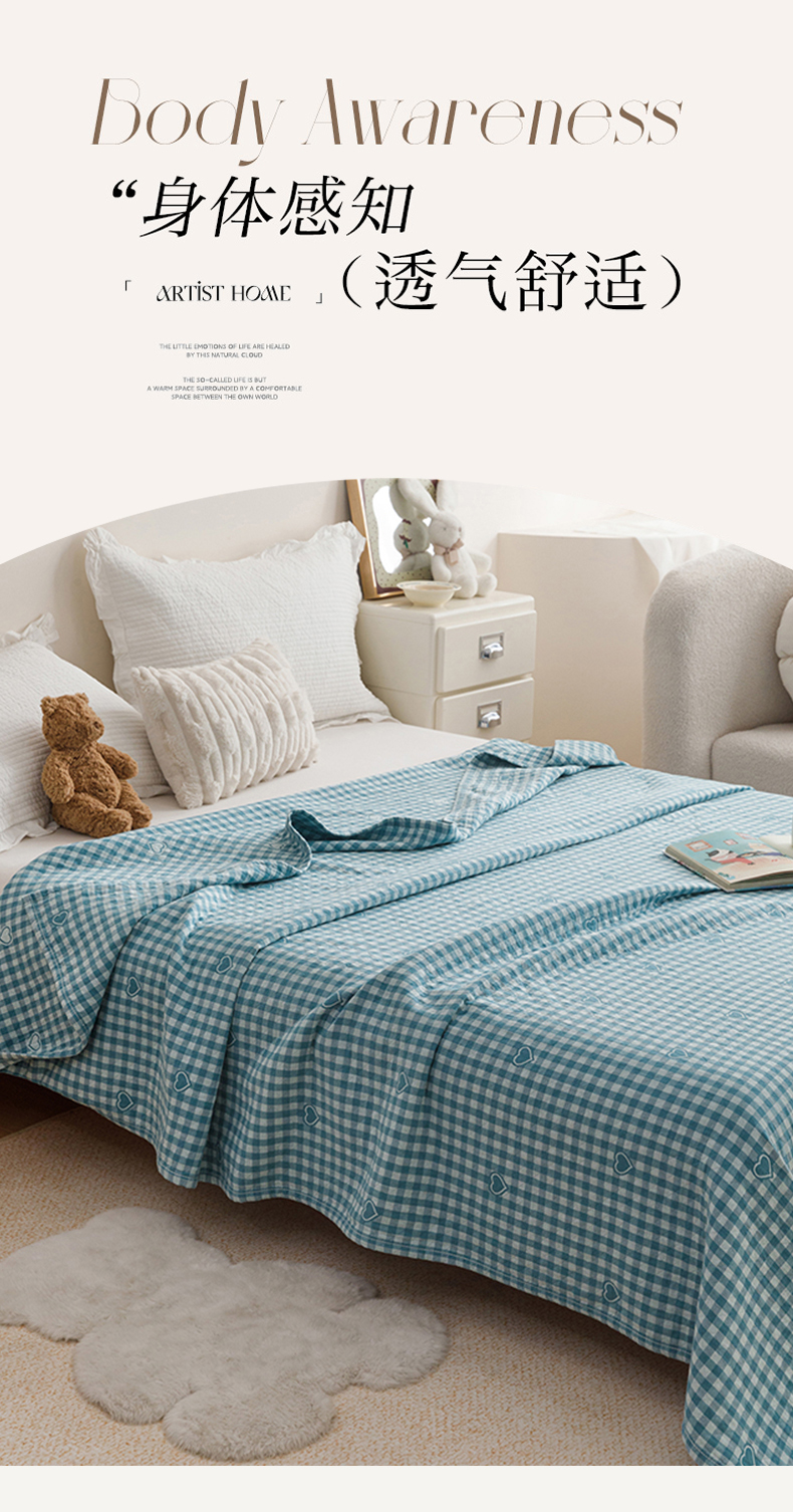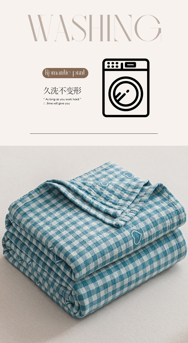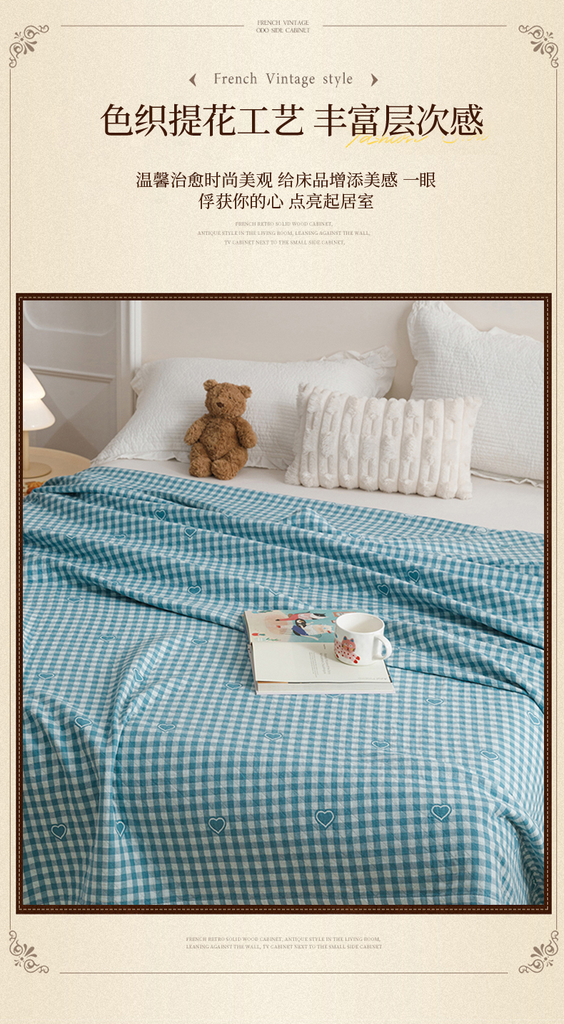 商品名称:悦然毛巾被 2026新款色织水洗棉盖毯安心棉床盖全棉纱布毛巾被夏被夏凉被空调被 蓝格心语