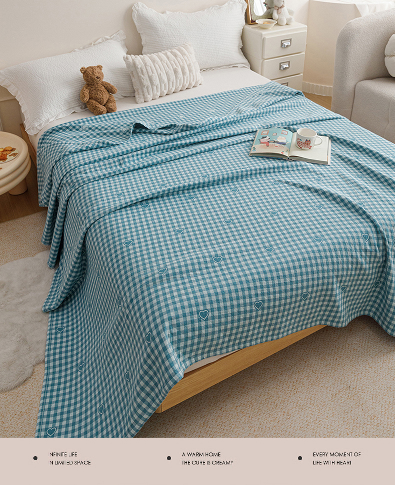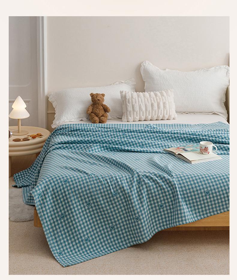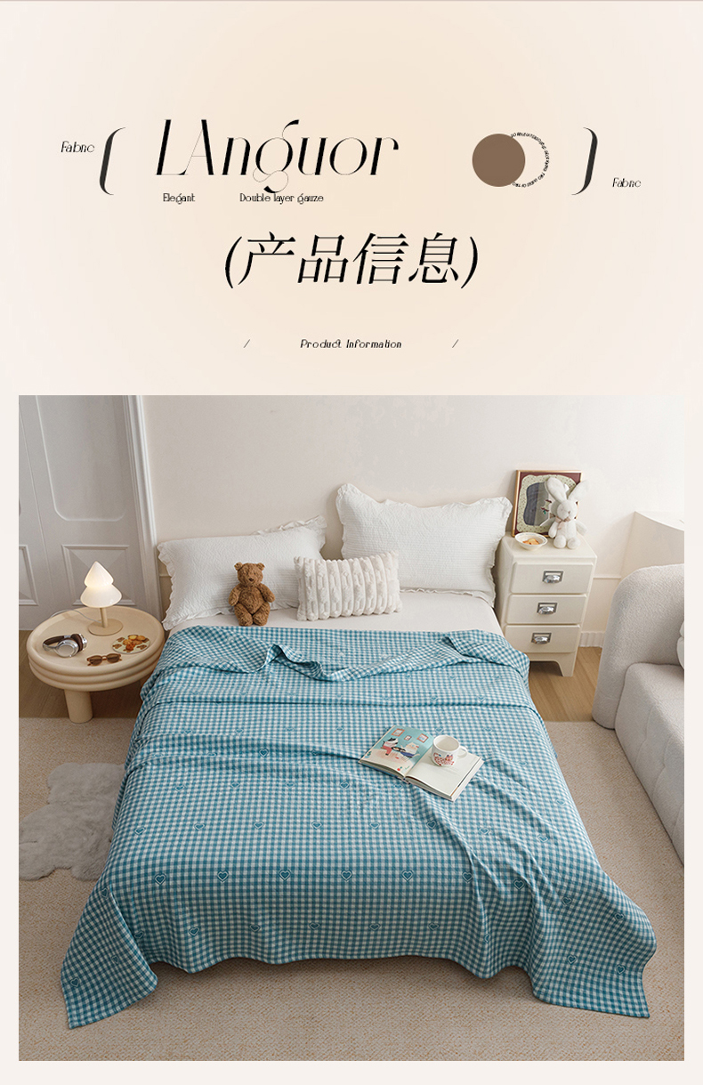 悦然毛巾被 2026新款色织水洗棉盖毯安心棉床盖全棉纱布毛巾被夏被夏凉被空调被 蓝格心语