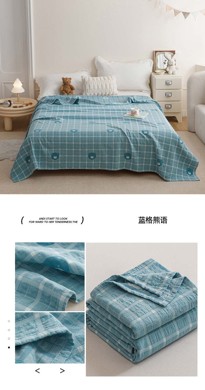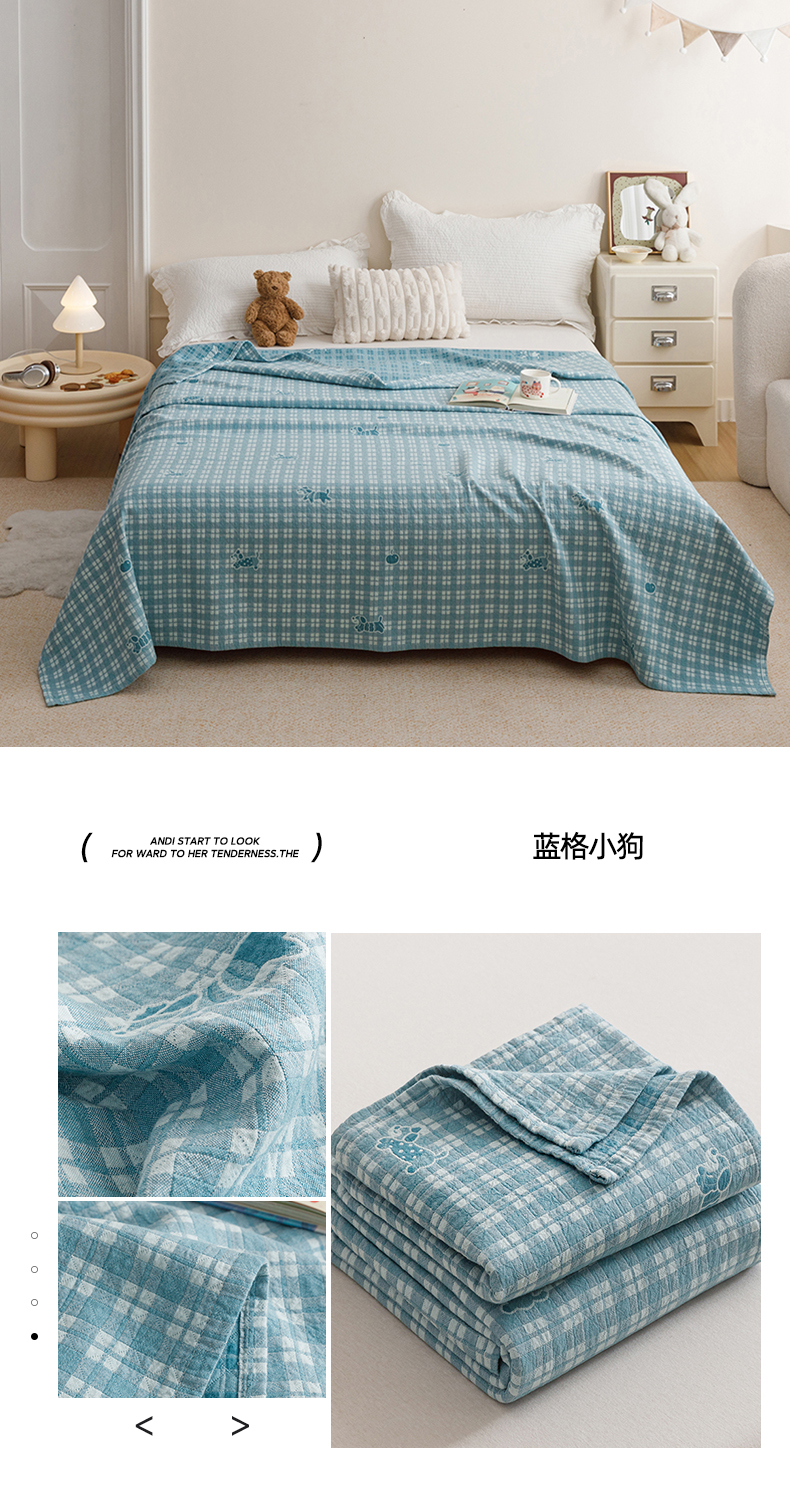 (总)悦然毛巾被 2026新款色织水洗棉盖毯安心棉床盖全棉纱布毛巾被夏被夏凉被空调被,组合图仅供展示不可下单,蓝格萌马,蓝格小狗,蓝格心语,蓝格星芒,蓝格熊语