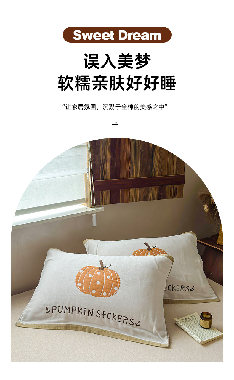 商品名称:乐家毛巾被(工厂自产自销) 2026新款全棉纯棉四层纱布枕巾 南瓜派对