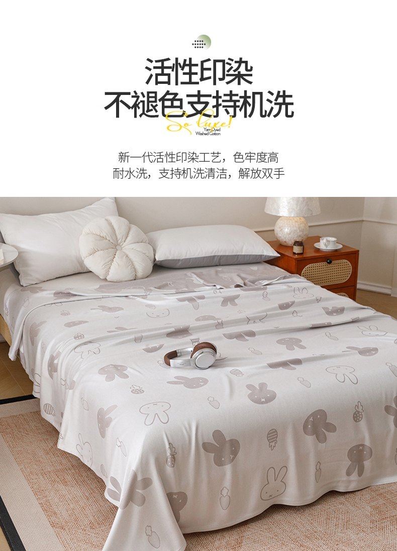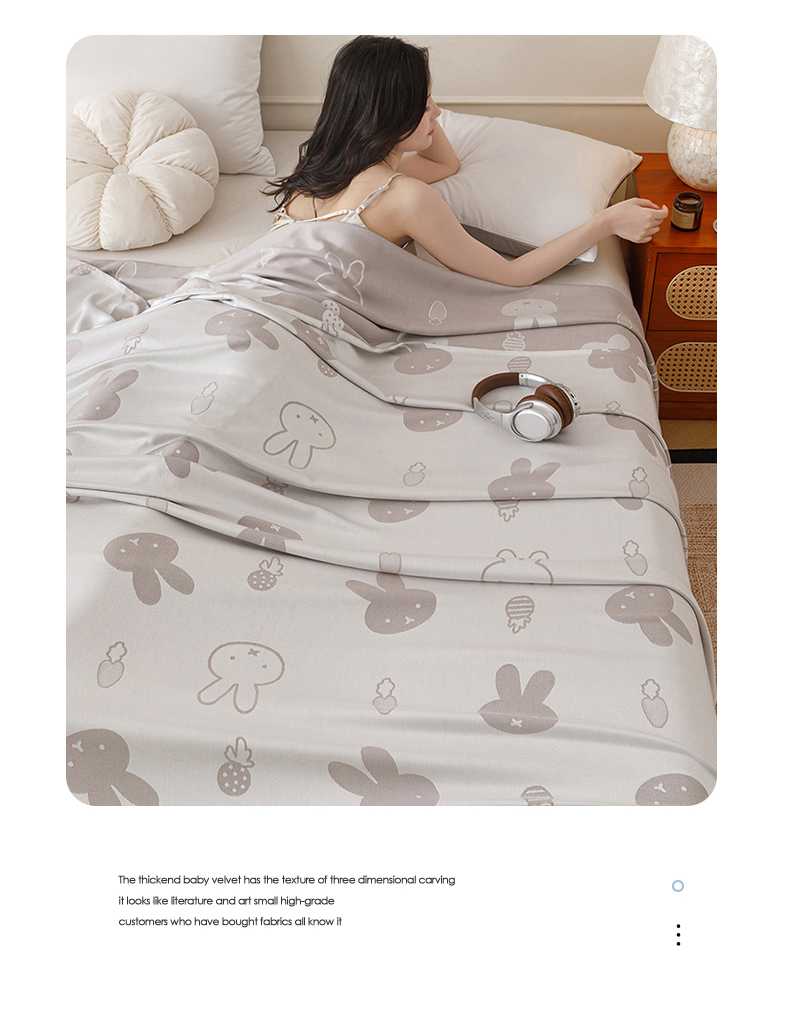 商品名称:悦然毛巾被 2026新款竹纤维冷感毯单层毛巾被夏被空调被斜纹提花叶子卡通 甜心兔银