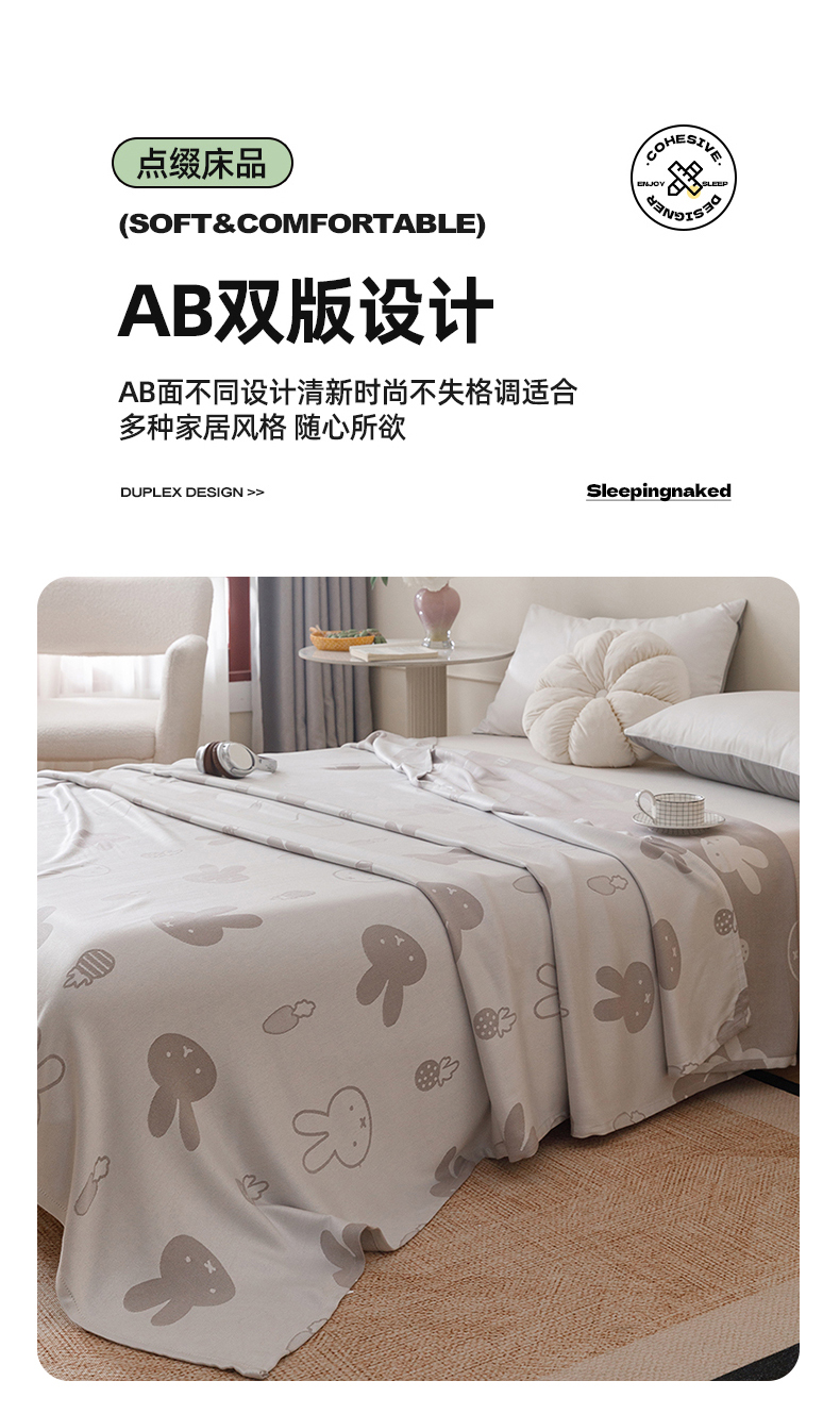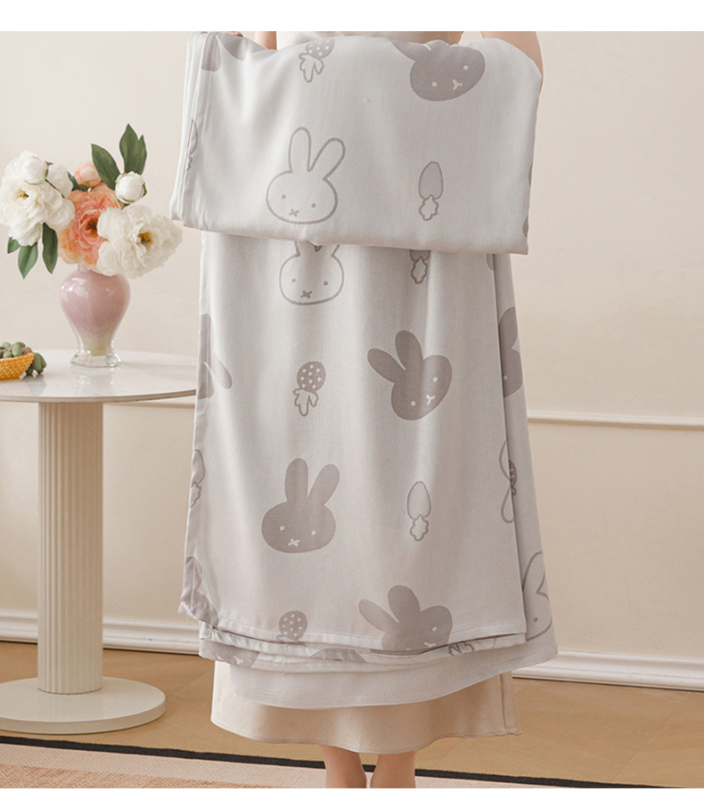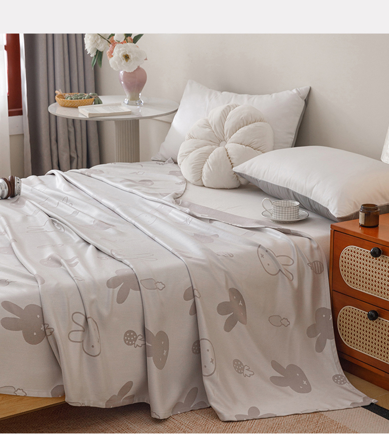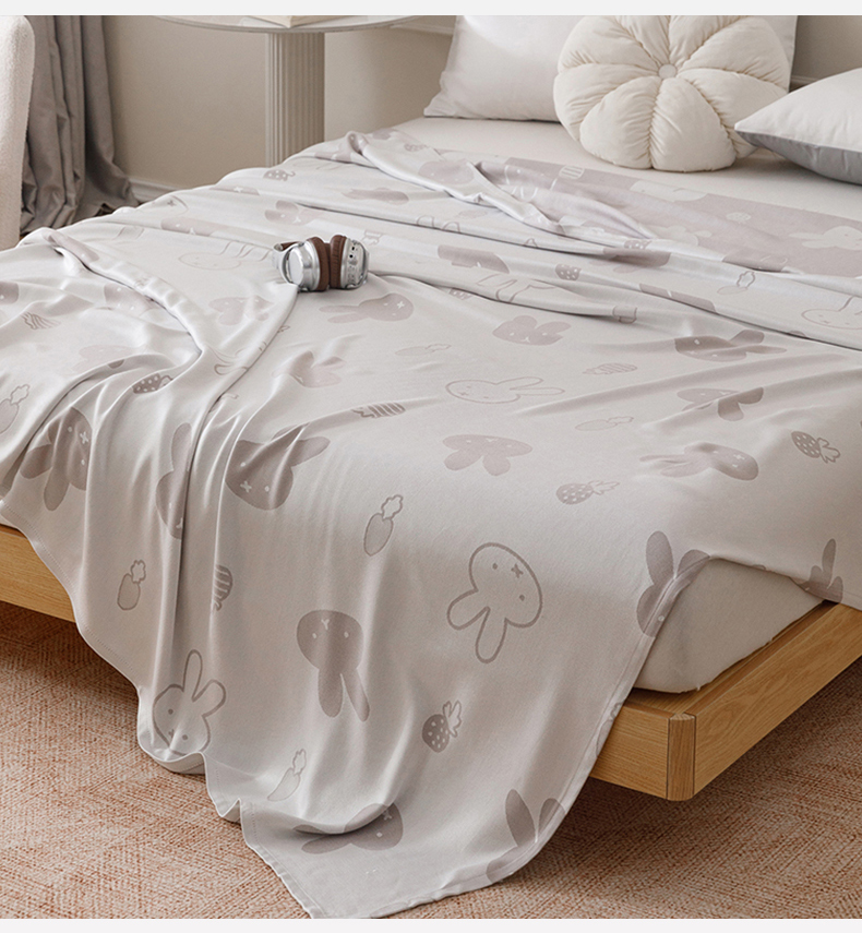 悦然毛巾被 2026新款竹纤维冷感毯单层毛巾被夏被空调被斜纹提花叶子卡通 甜心兔银