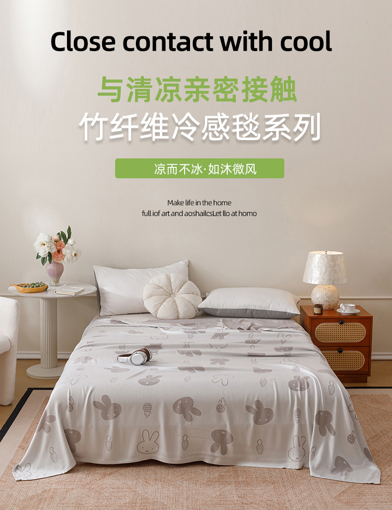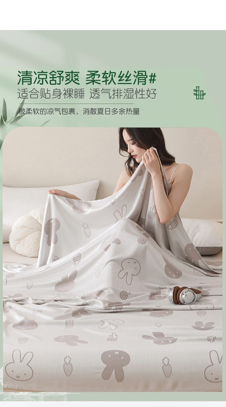 (总)悦然毛巾被 2026新款竹纤维冷感毯单层毛巾被夏被空调被斜纹提花叶子卡通,甜心兔粉,甜心兔蓝,甜心兔绿,甜心兔银,竹间花粉,竹间花蓝,竹间花绿,竹间花银