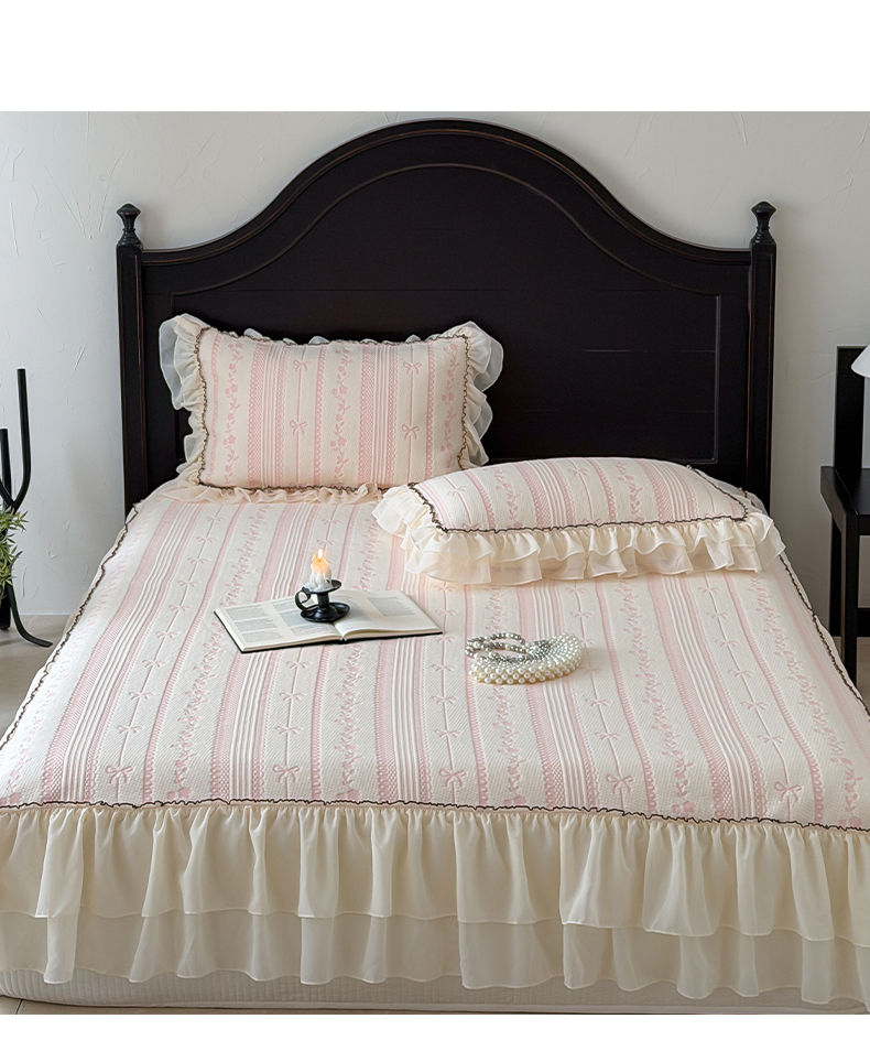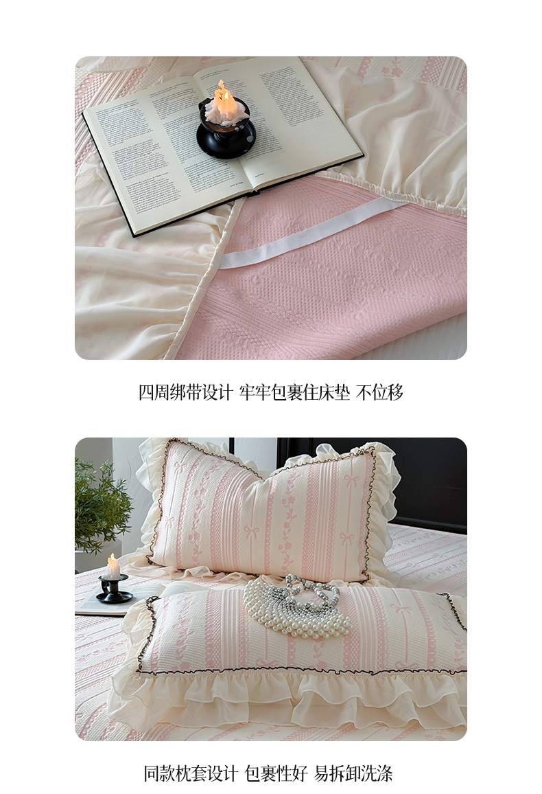 (总)山茶家居-原创设计(原山茶家纺) 2025新款全棉夹棉床裙,白色,粉色,奶黄,天蓝