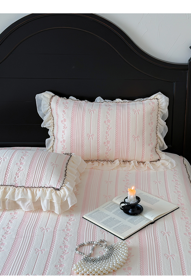 (总)山茶家居-原创设计(原山茶家纺) 2025新款A类水洗棉印花花边四件套-甜梦,甜梦-白色,甜梦-粉色,甜梦-米色