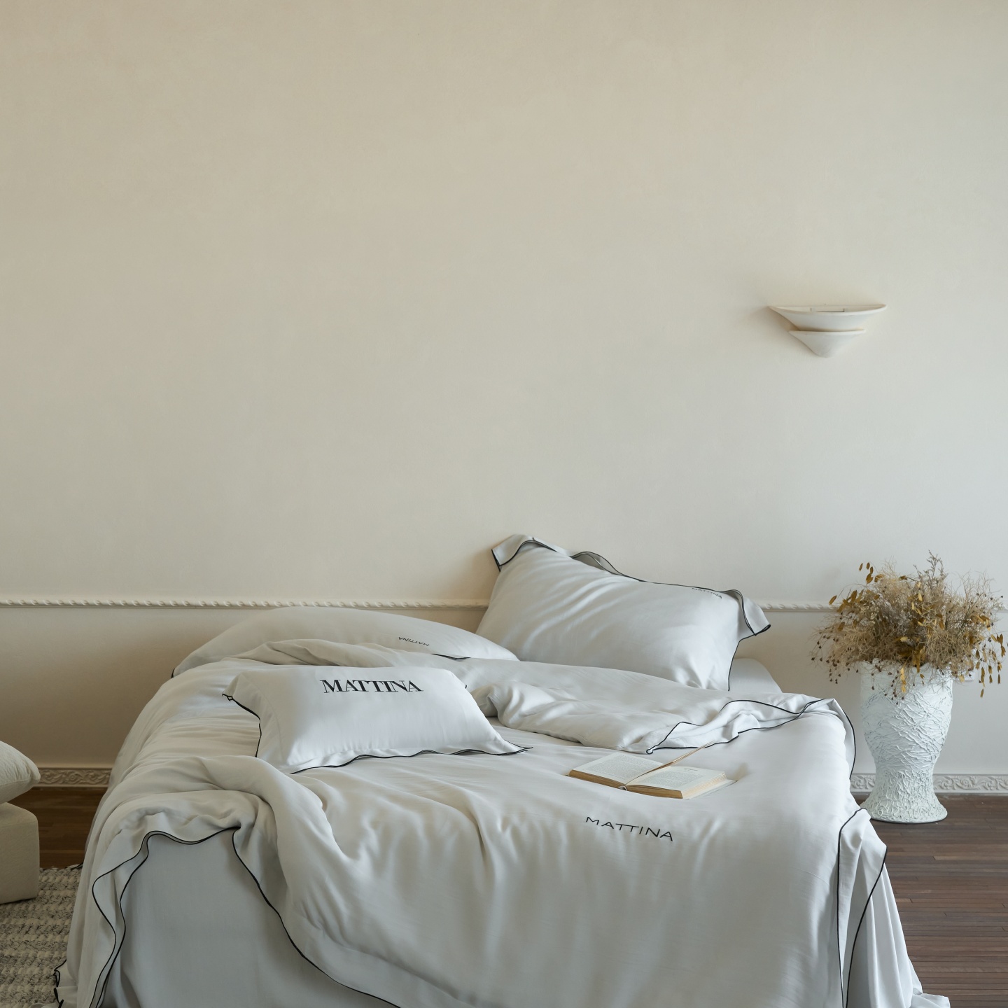 商品名称:安莱生活 2026新款天丝砂洗母婴级A类(含报告)轻氧天丝叙“奶芙”刺绣四件套 奶芙系列 奶芙-月影灰