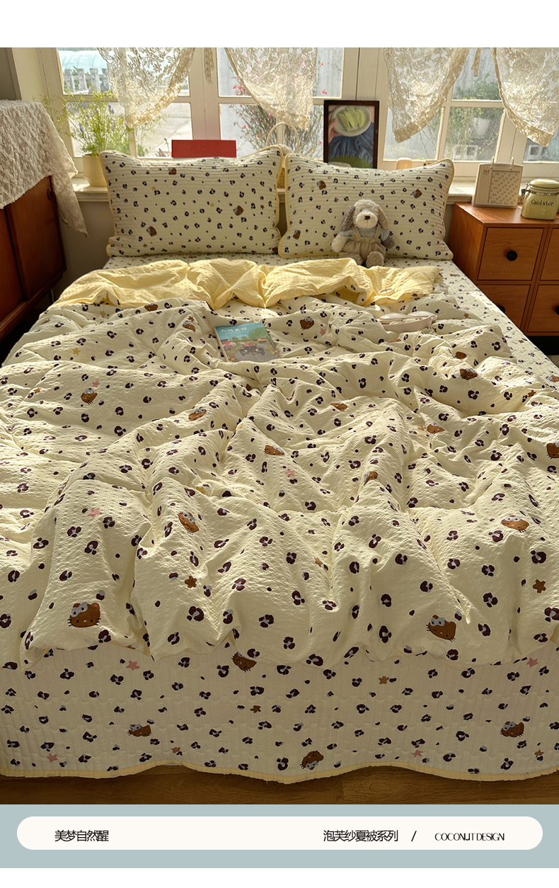 当前位置: 91家纺网 > 商品网购 > 床品套件 > 四件套 > 夏被四件套 > 初念 2026新款高品质A类泡芙纱床盖夏被四件套-青提系列(晚风渐热,温柔续夏) 青提-木马小花团