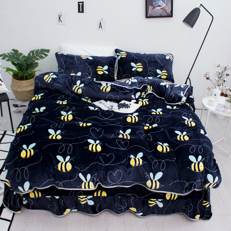 顾里家纺 加厚保暖牛奶绒套件 蜜蜂