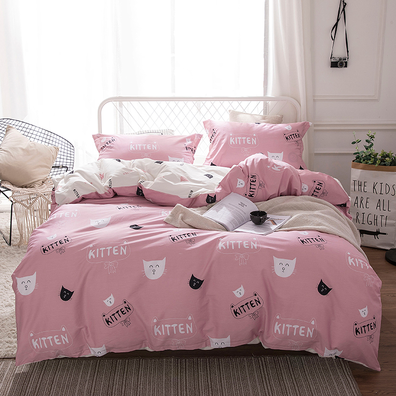 商品名称:时年家纺 2018新款全棉四件套床单款猫咪宝贝-粉