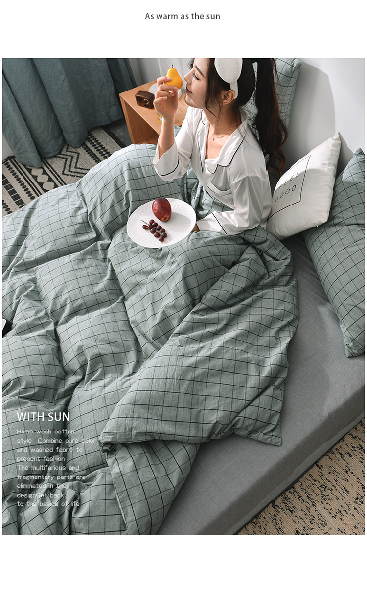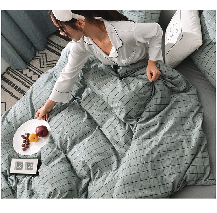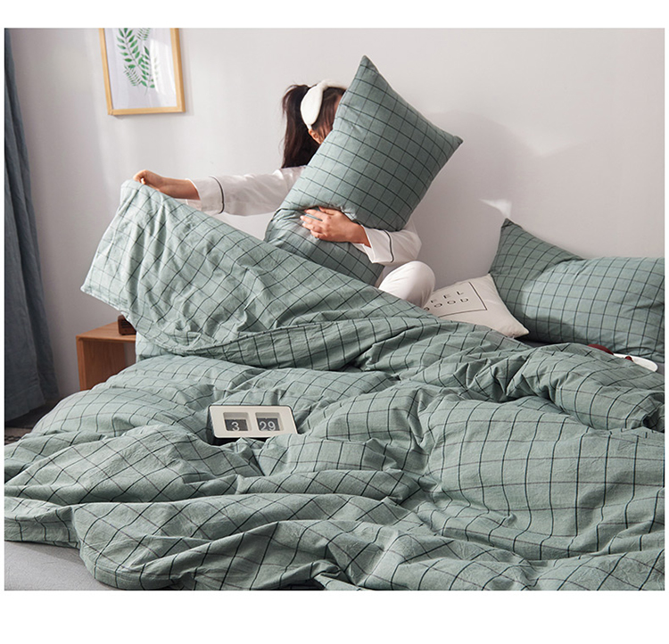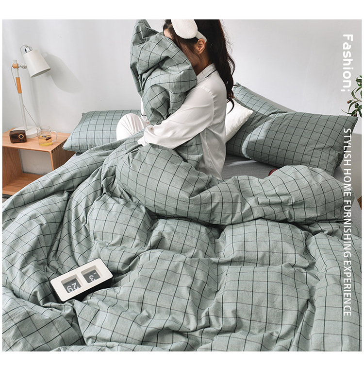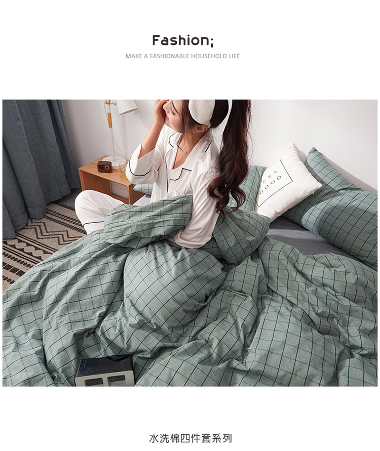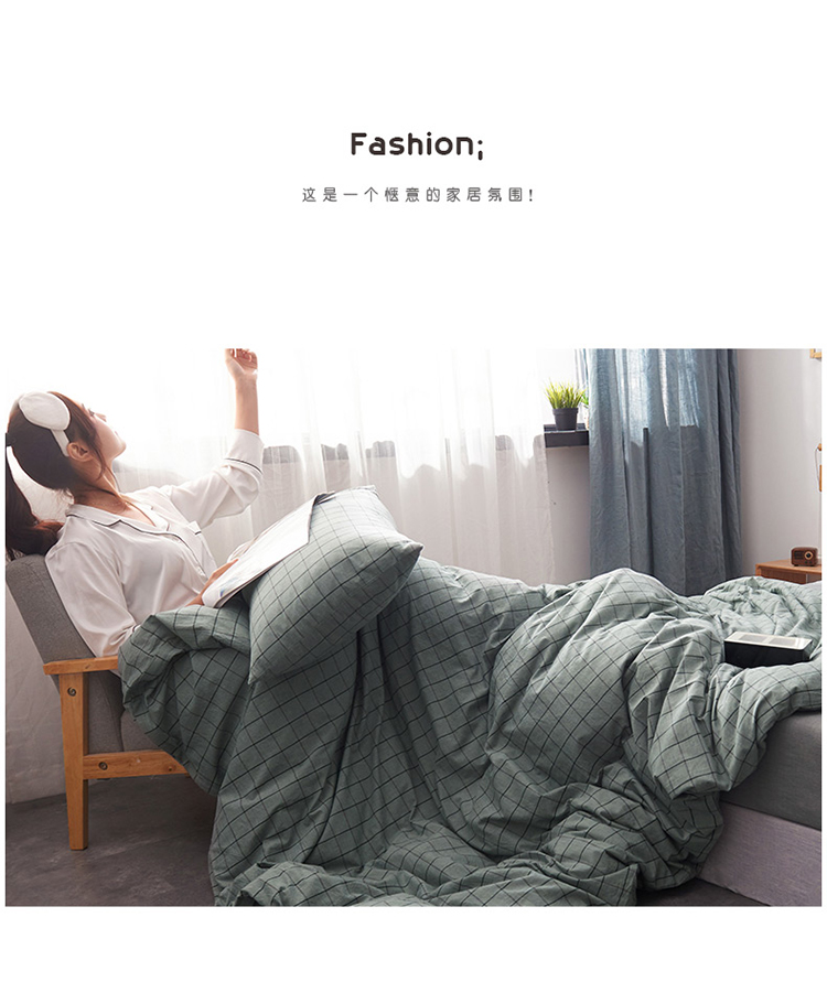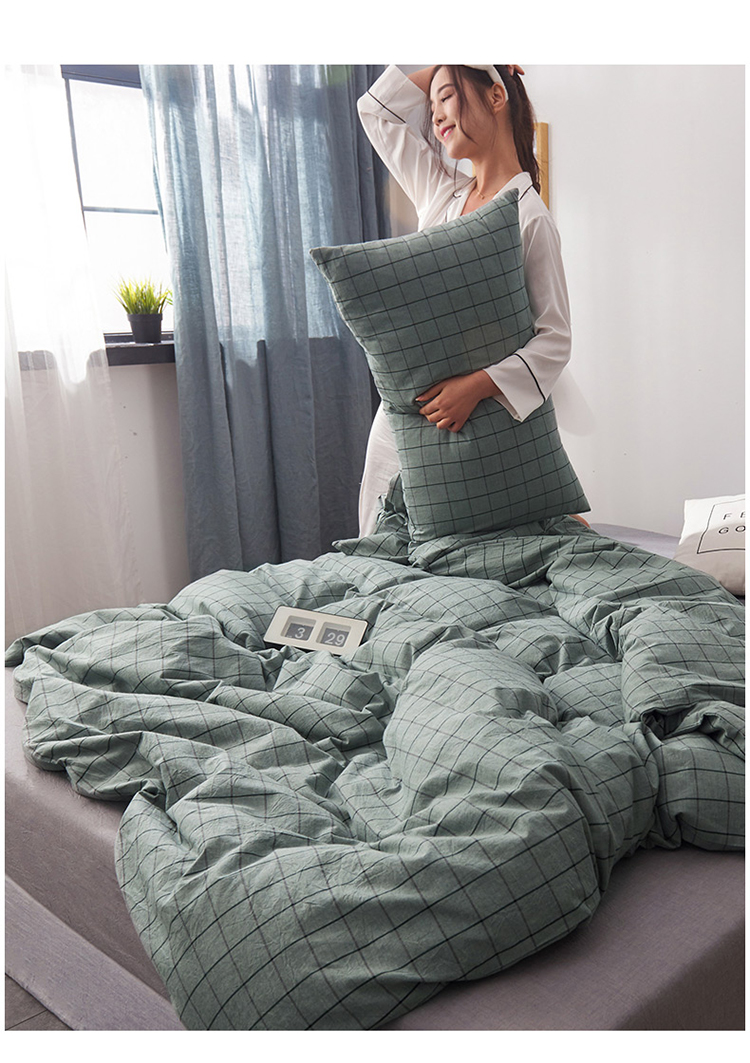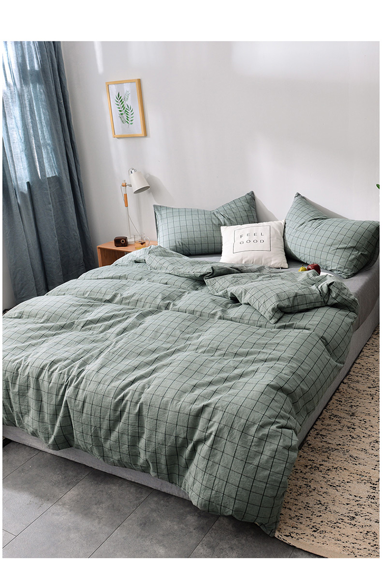 柠萌家居2019全棉色织水洗棉无印良品四件套床单款格纹-豆绿