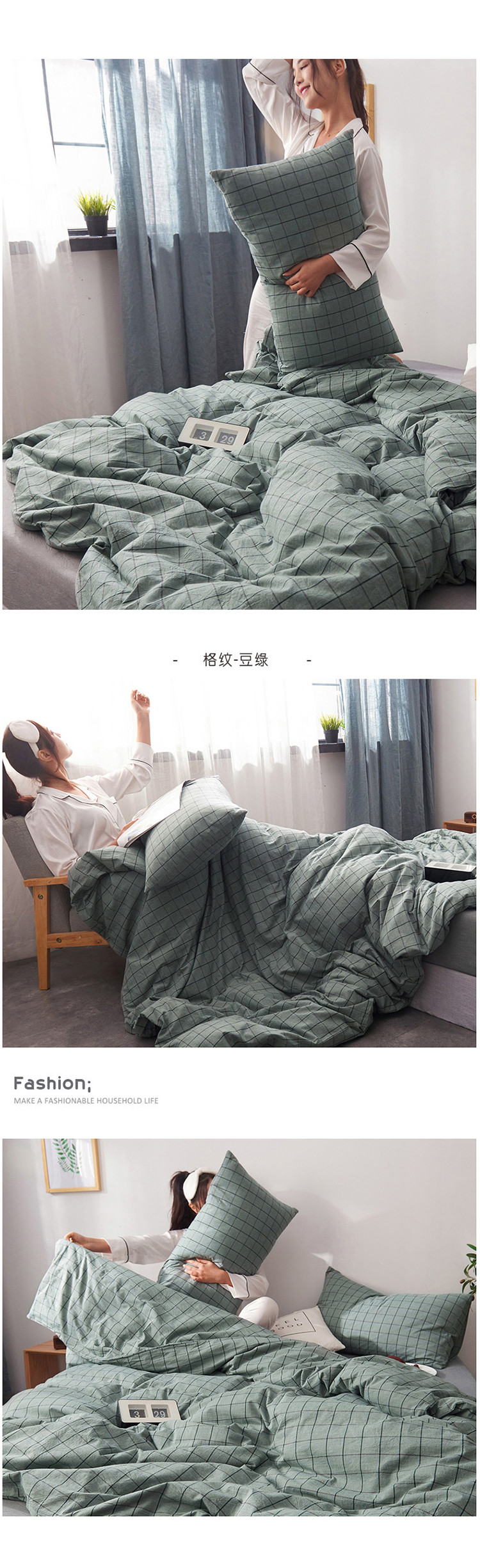 商品名称:柠萌家居2019全棉色织水洗棉无印良品四件套床单款格纹-豆绿
