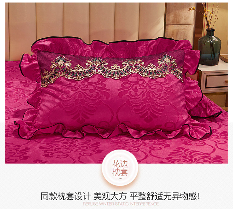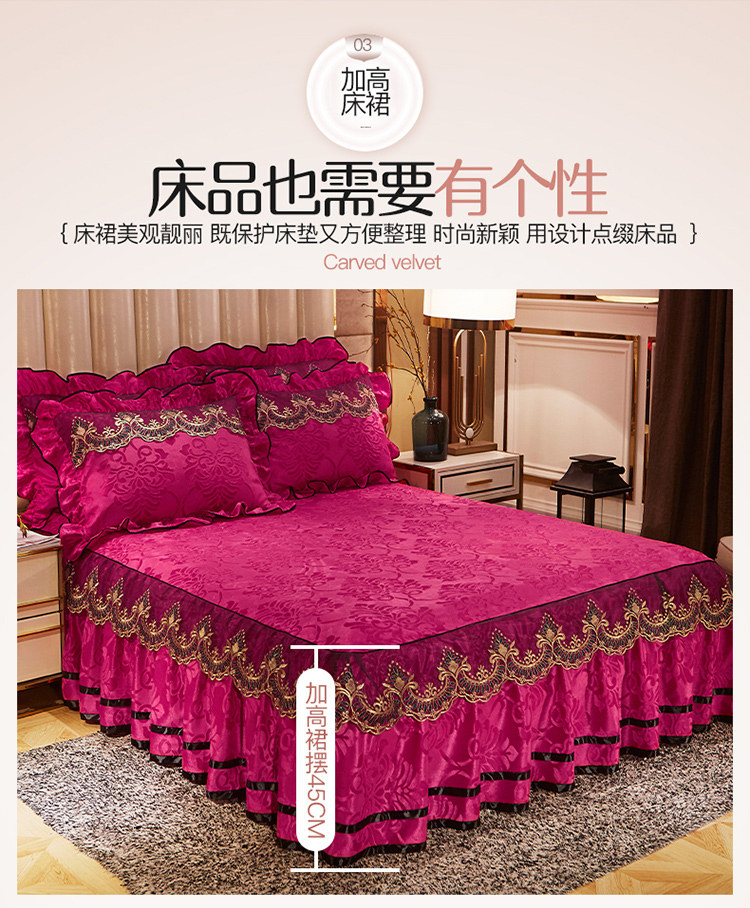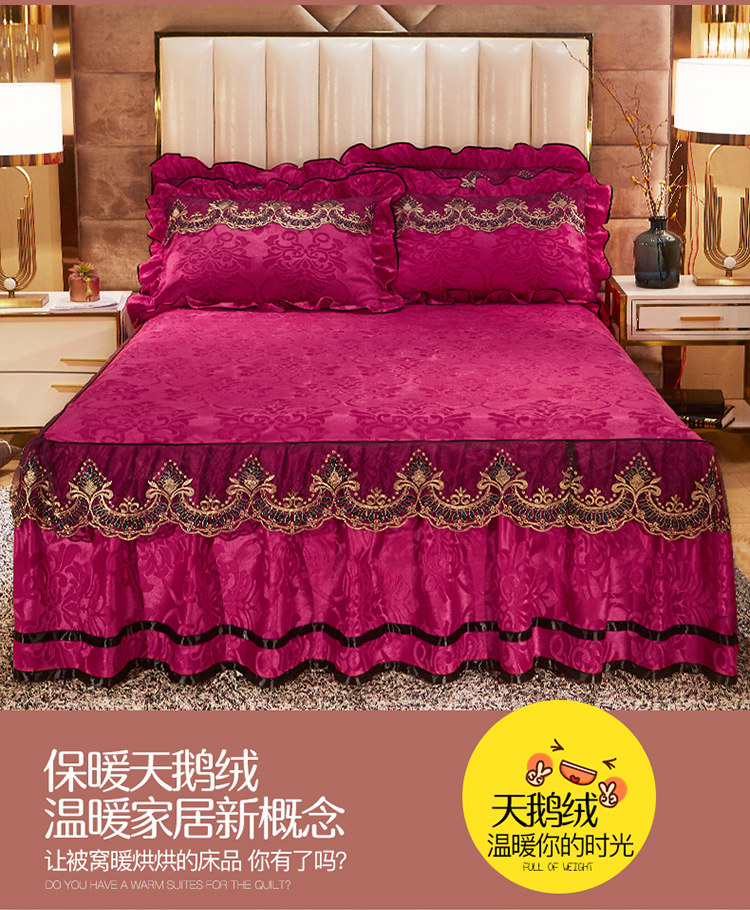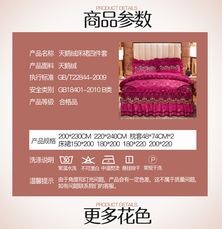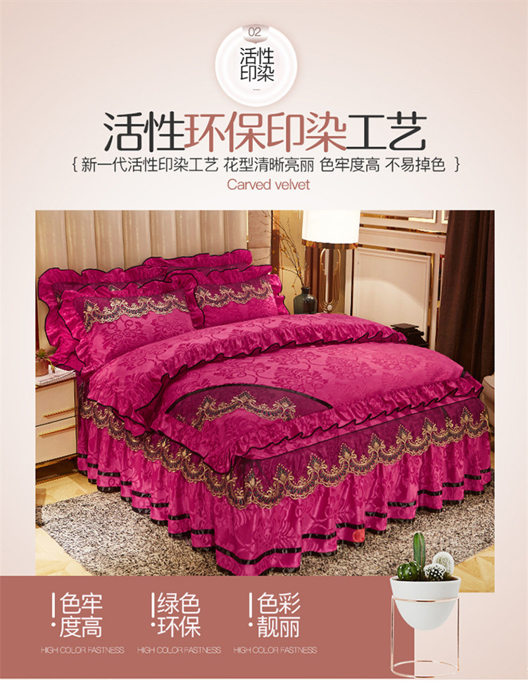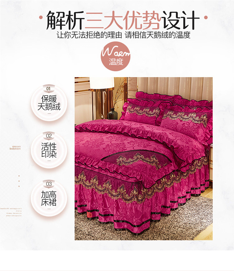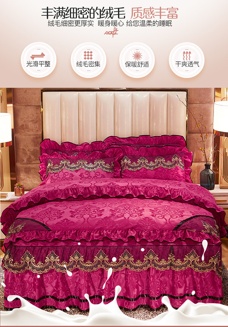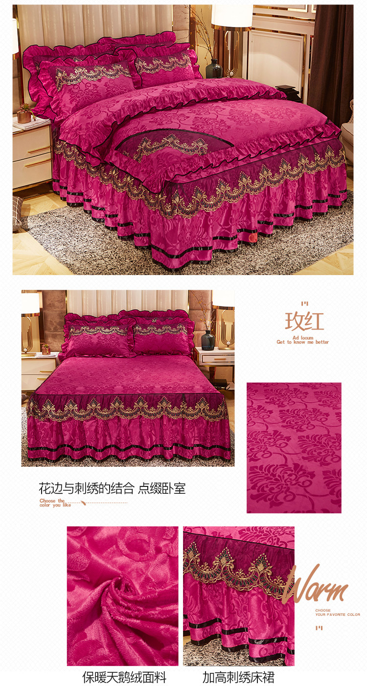 商品名称:网红馆 2025新款天鹅绒盛世经典床裙四件套 玫红