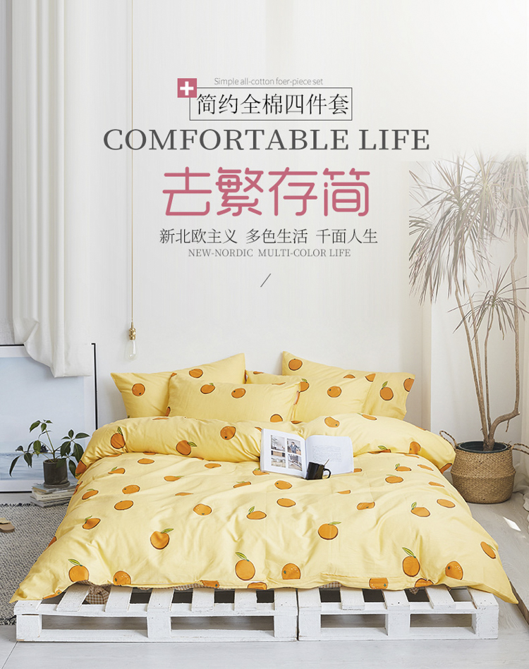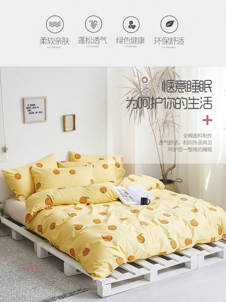 商品名称:棉眠 2019新款13070简约全棉四件套 小柑橘