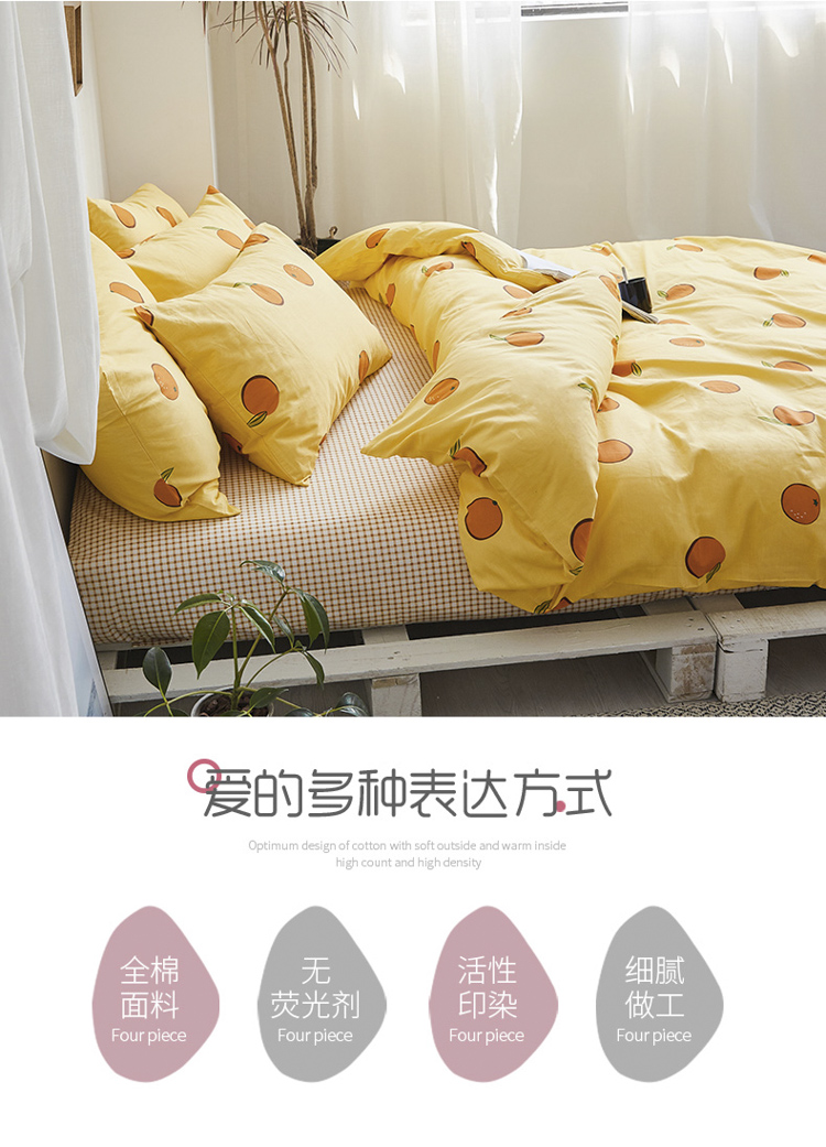 棉眠 2019新款13070简约全棉四件套 小柑橘