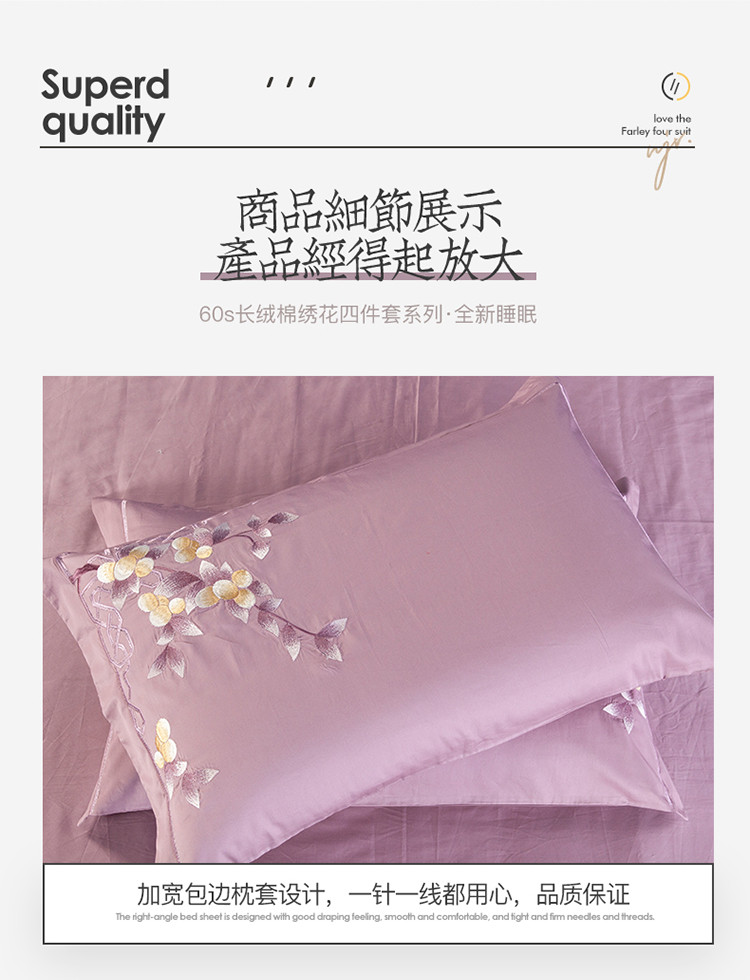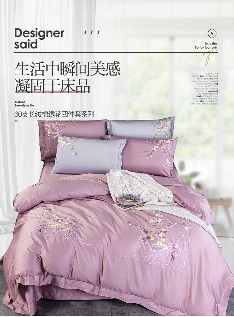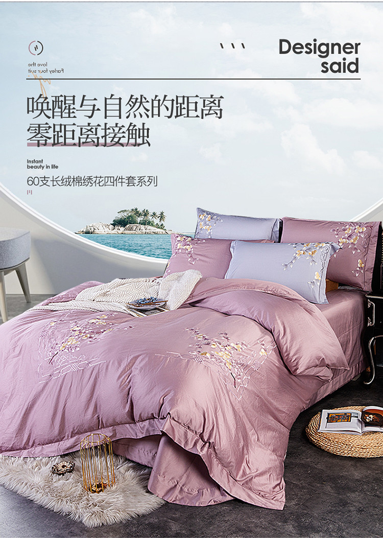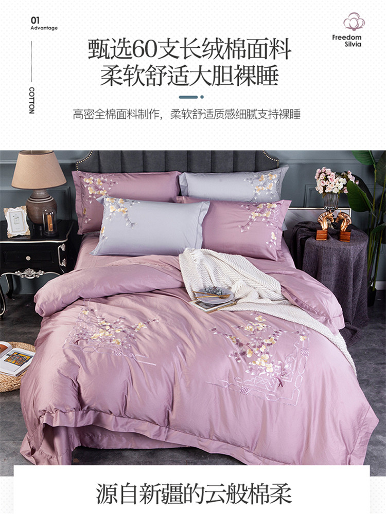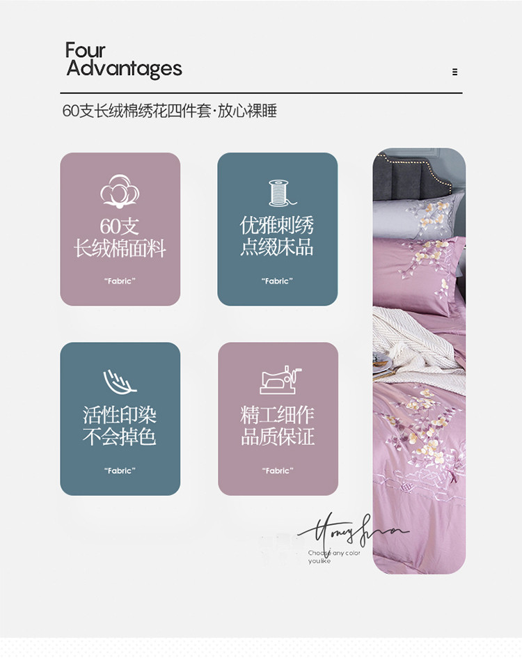 (总)雲归梦 2021新款全棉生态磨毛刺绣四件套,慕思-橙色,慕思-粉紫,慕思-灰,慕思-米黄,慕思-青绿,慕思-天蓝