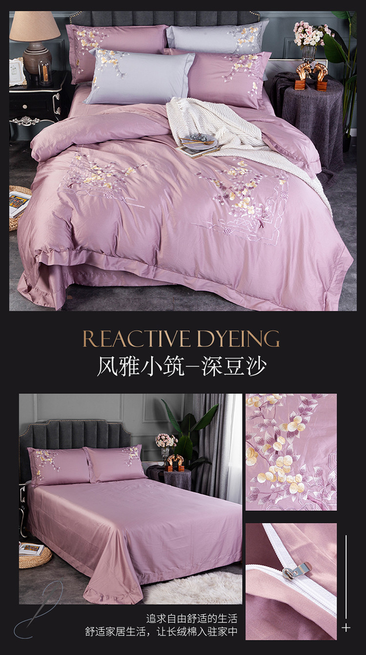 商品名称:雲归梦 2019新款60S长绒棉绣花四件套 风雅小筑-深豆沙