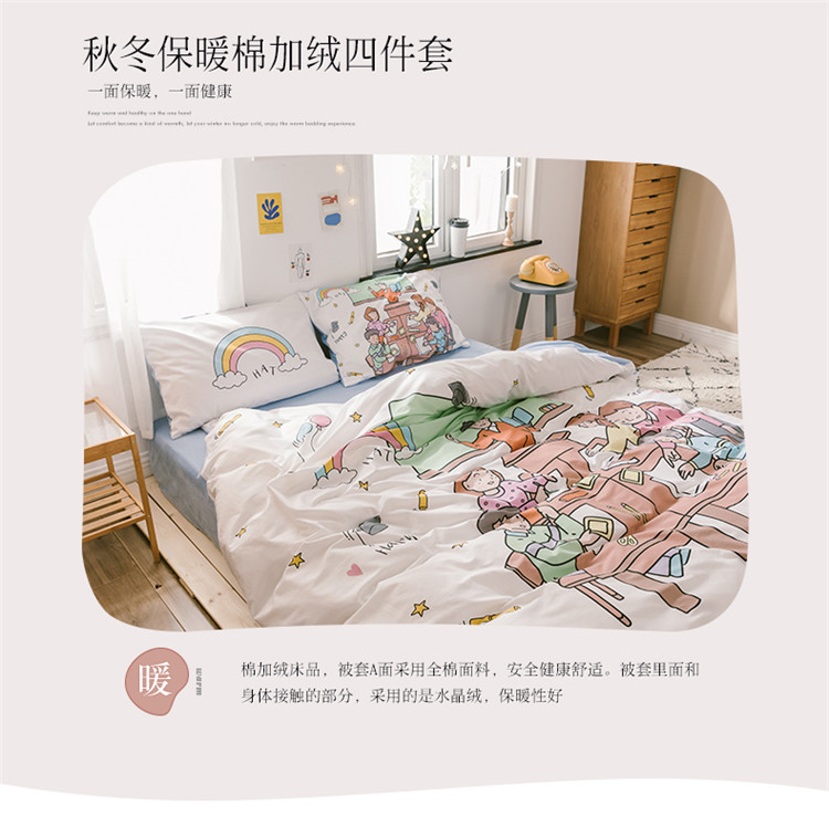 窝米 2019大版二次元卡通棉加绒四件套床单款拜托了老师