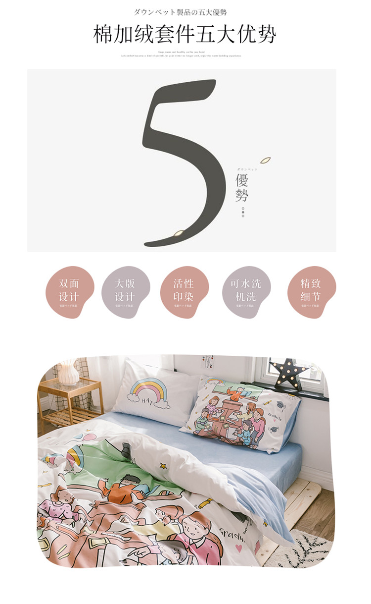 商品名称:窝米 2019大版二次元卡通棉加绒四件套床单款拜托了老师