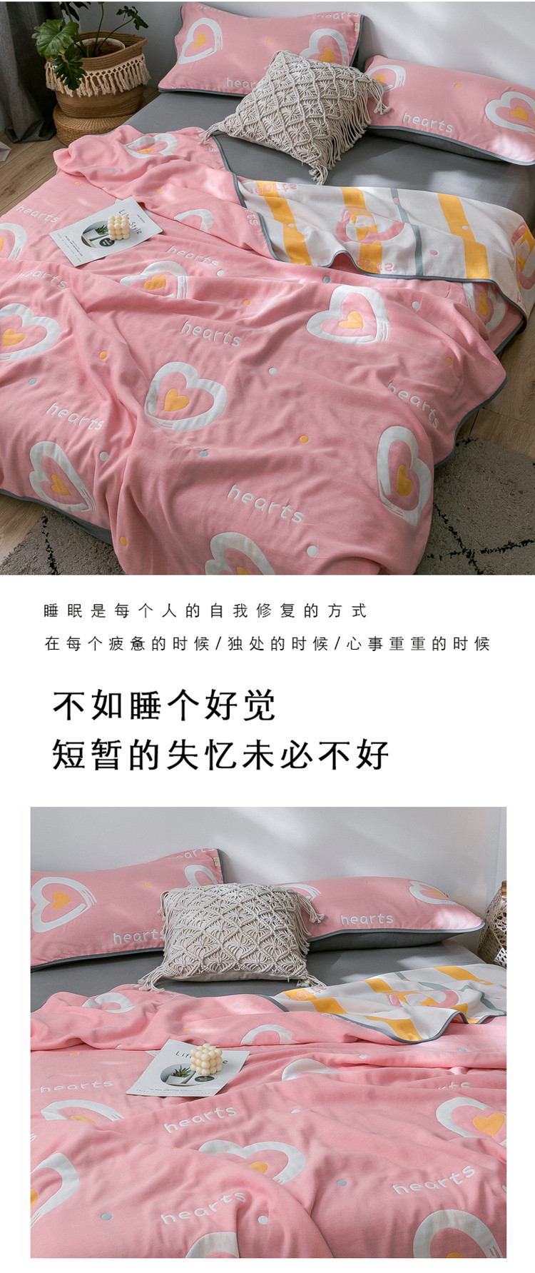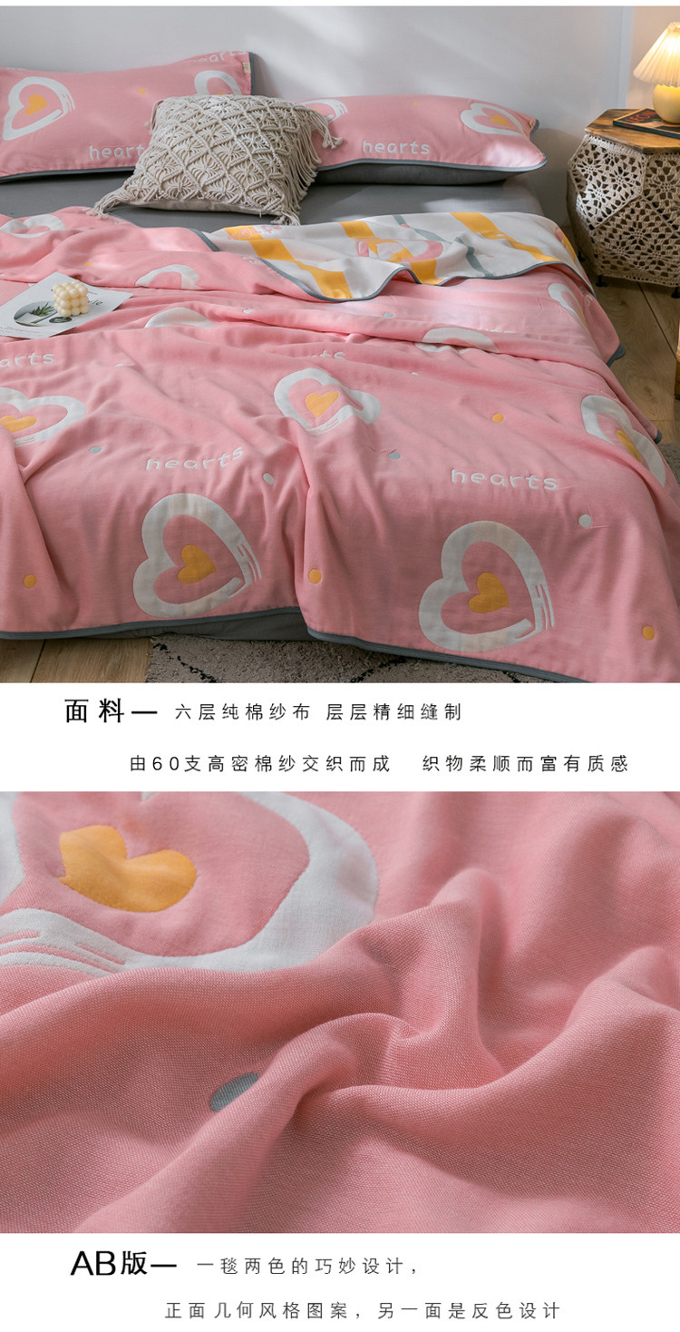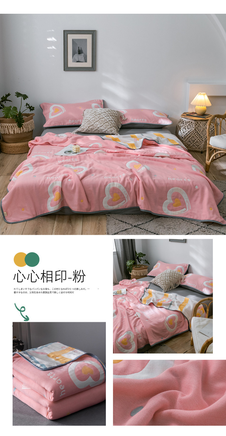 朴尔2020新款时尚六层全棉纱布盖毯夏季毛巾被 心心相印-粉
