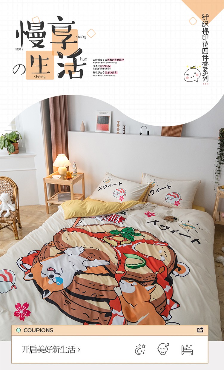 商品名称:爱缦 2020新款日系针织棉数码大版印花四件套 汪汪星人