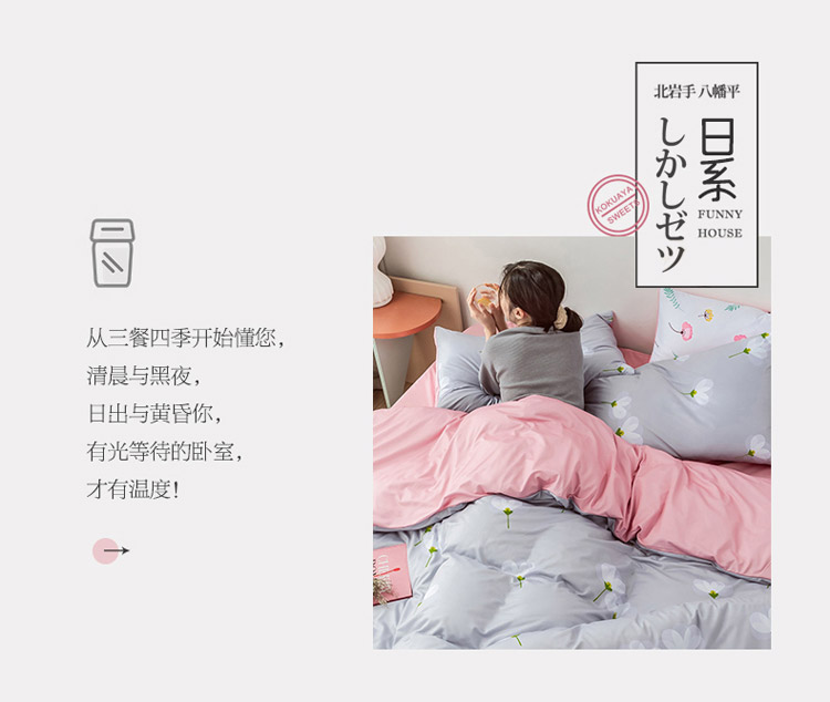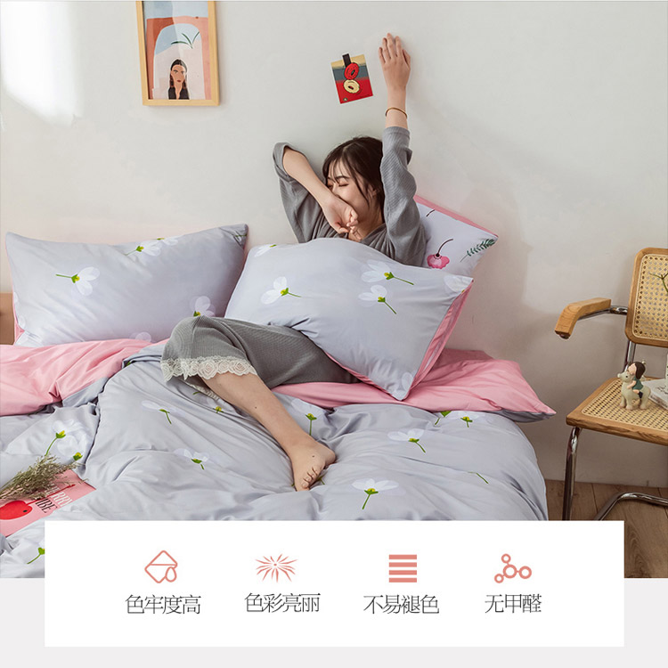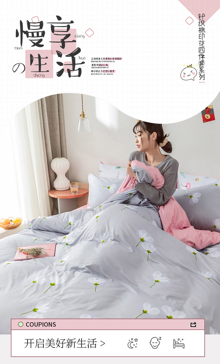 商品名称:爱缦 2020日系针织棉数码小版印花四件套 四叶草