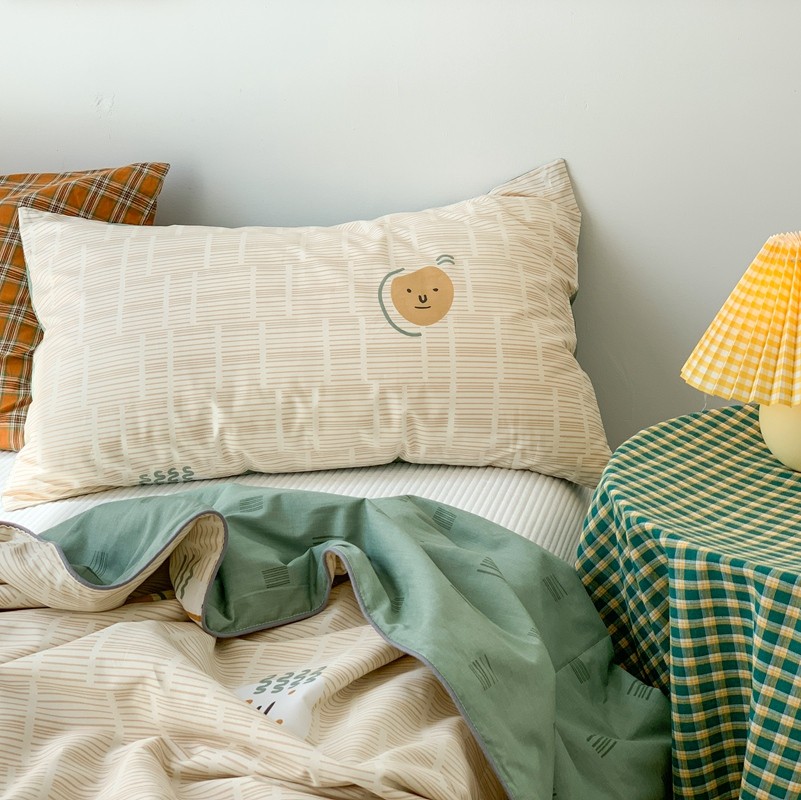 时年 2022新款全棉40支13372ins条纹款四件套 复古奶绿,复古奶绿