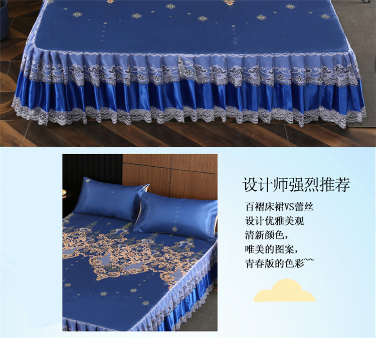 (总)能好家纺 2025新款蕾丝工艺水晶绒夹棉床裙,宝石兰,藏青,豆沙,粉玉,灰,酒红,墨绿,月光蓝