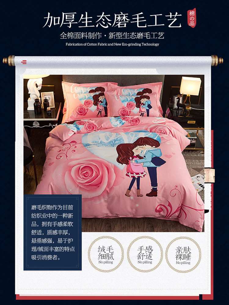 当前位置: 91家纺网 > 商品网购 > 床品套件 > 四件套 > 磨毛活性四件套 > 雲归梦 2020新款全棉生态磨毛大版四件套 二人世界