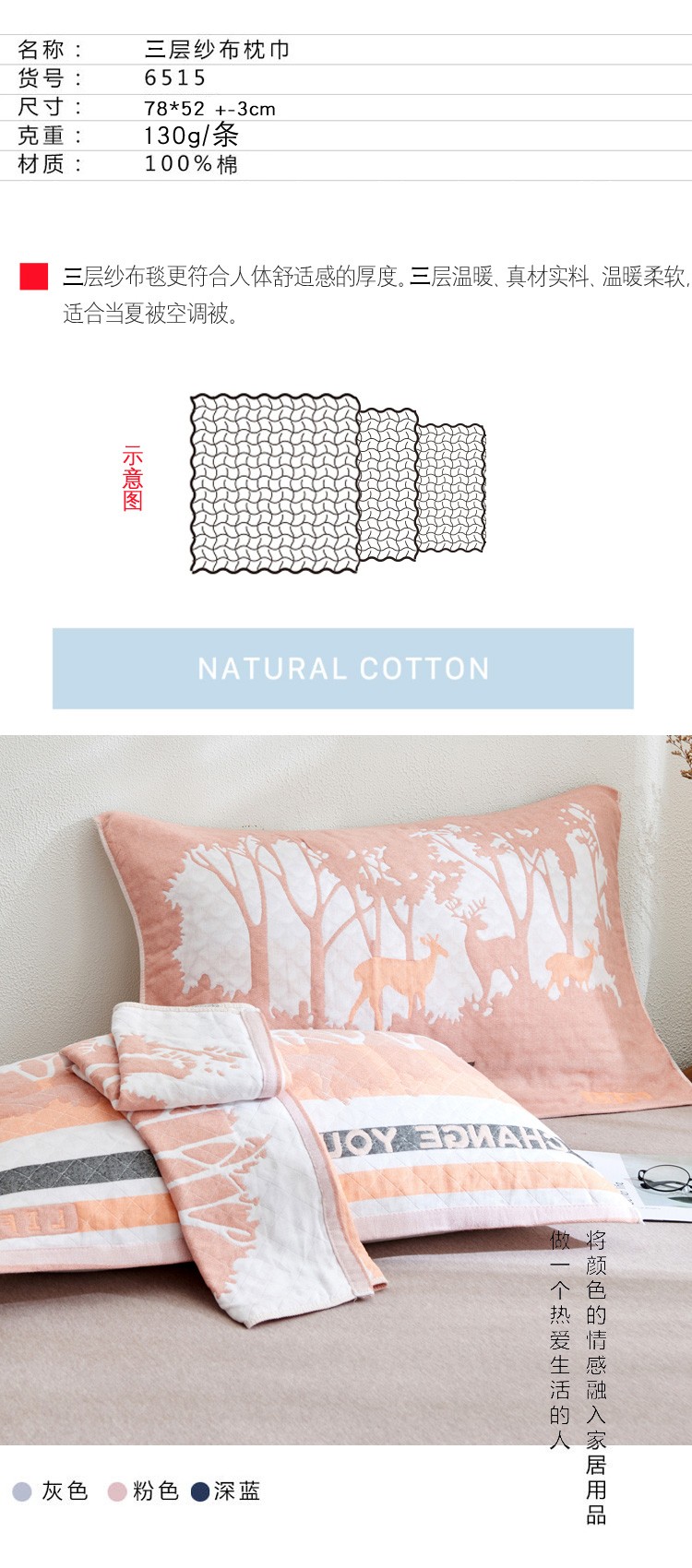 • 91家纺网 家纺一手货源 找家纺 朴尔 2020新款三层纱布枕巾 吉姆熊-灰