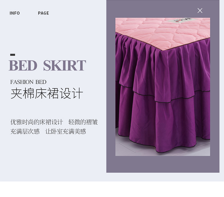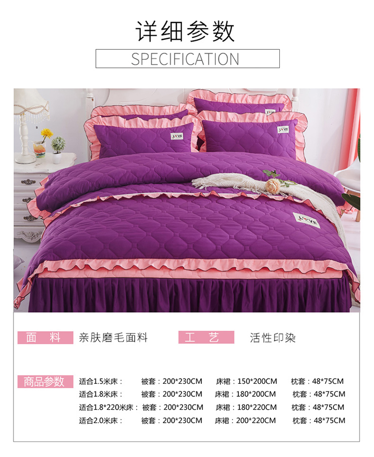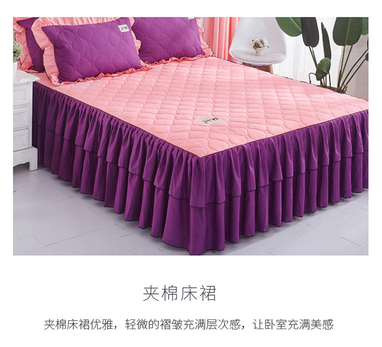 (总)艾裙海 2025新款90克磨毛夹棉绗缝床裙,粉色,大红色,米白色,深灰色,紫色,藏青色,宝蓝色,浅灰色,粉玉色,豆沙红