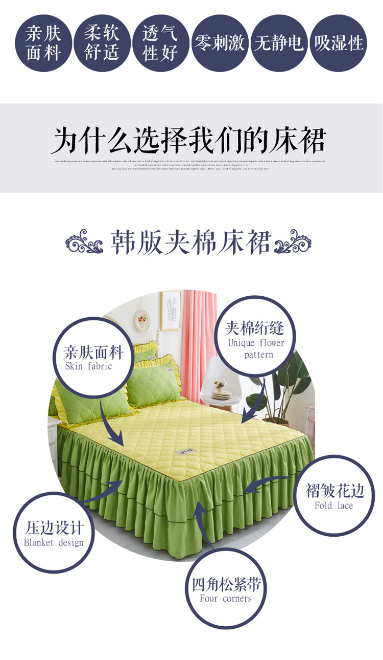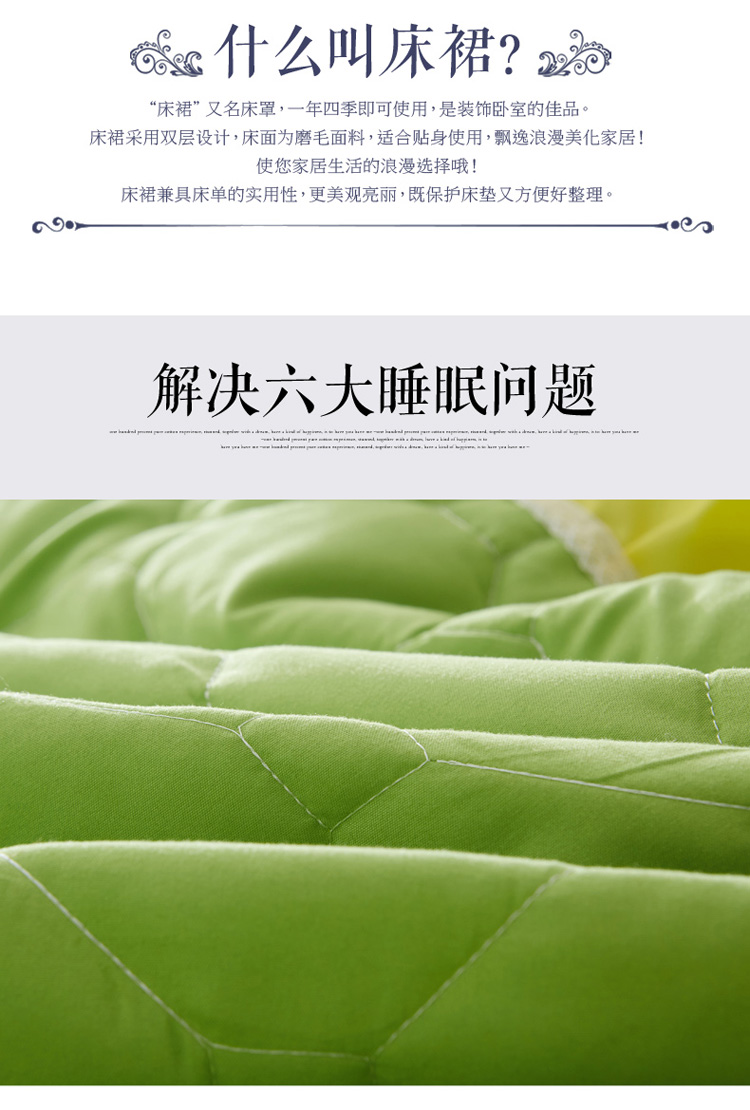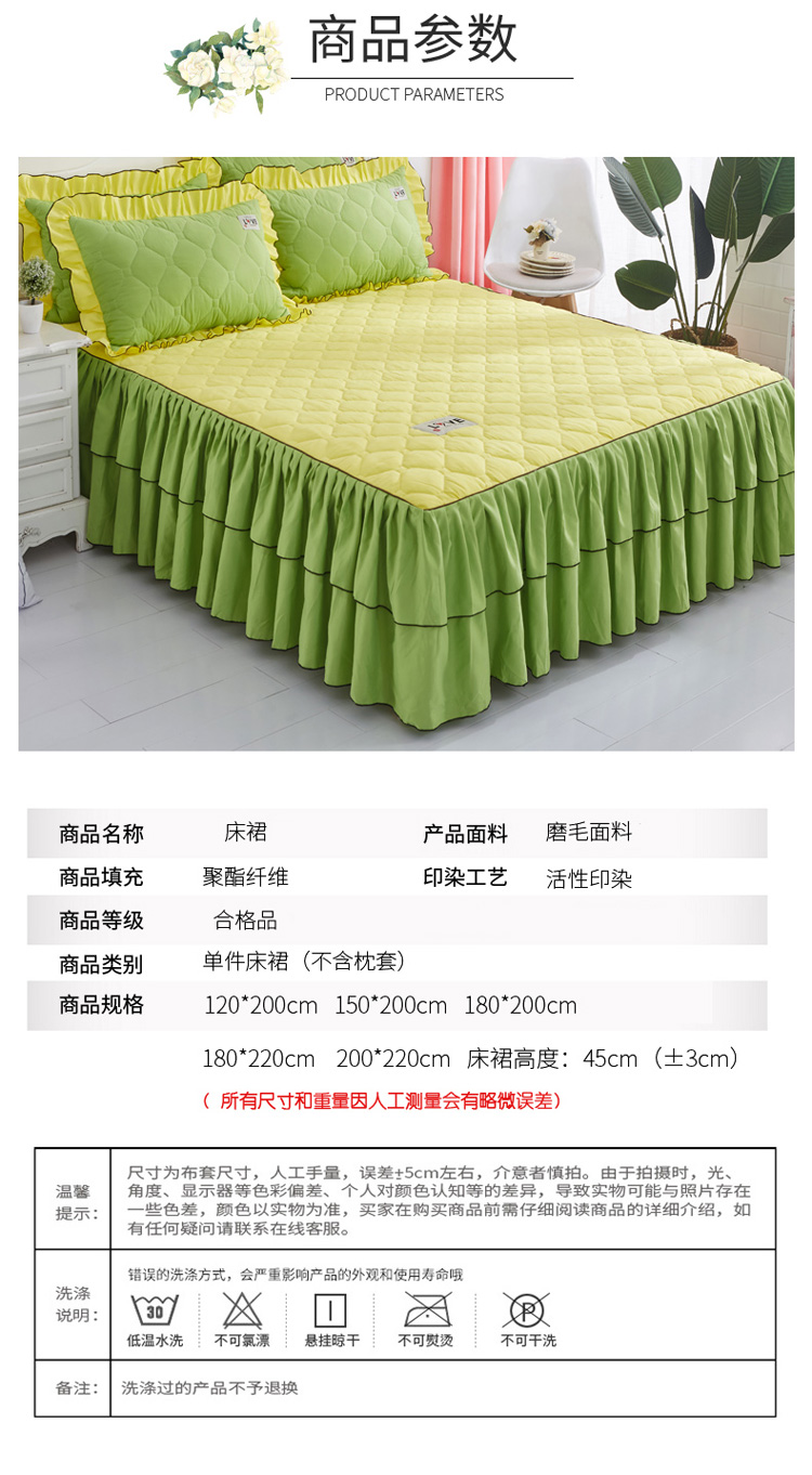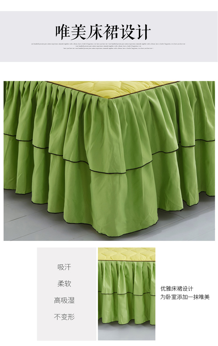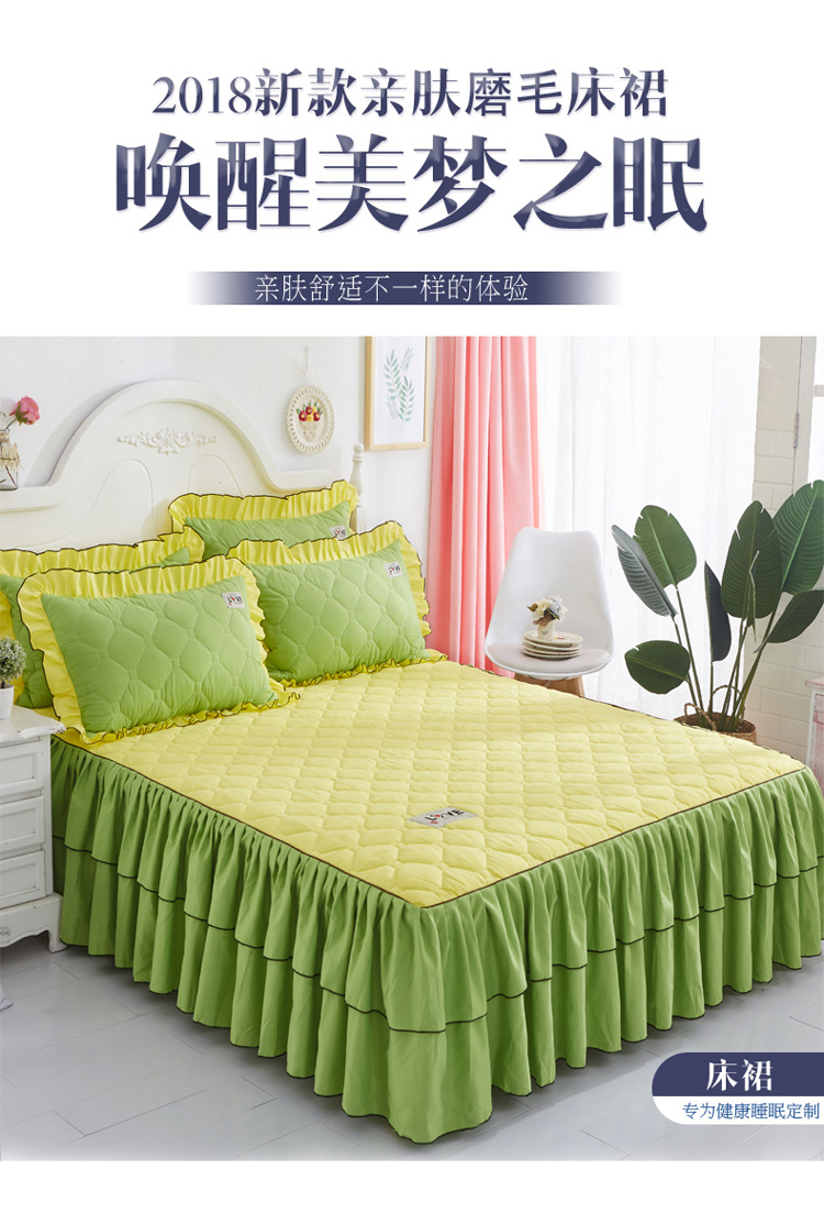 商品名称:艾裙海 2025新款纯色磨毛夹棉单床裙 黄拼果绿