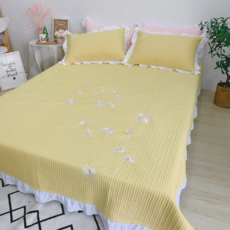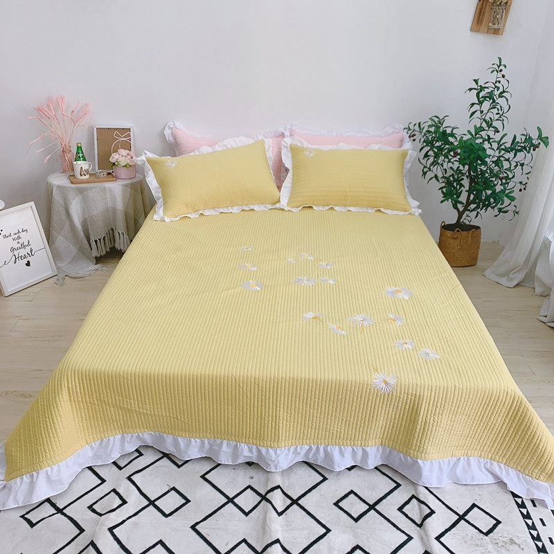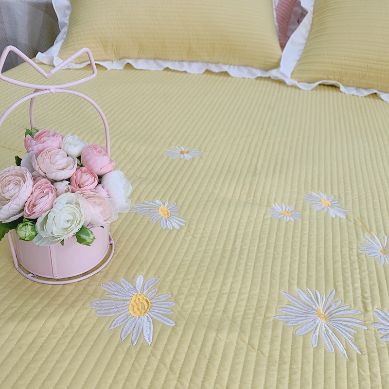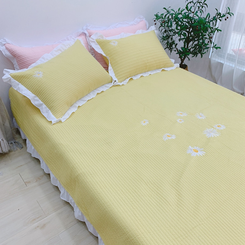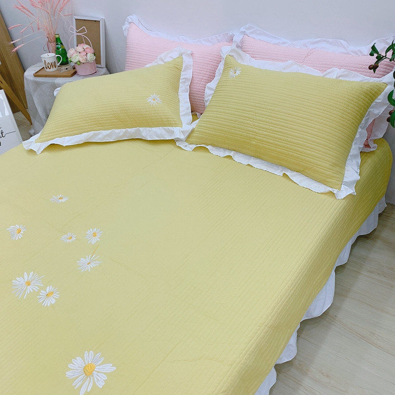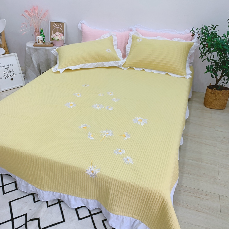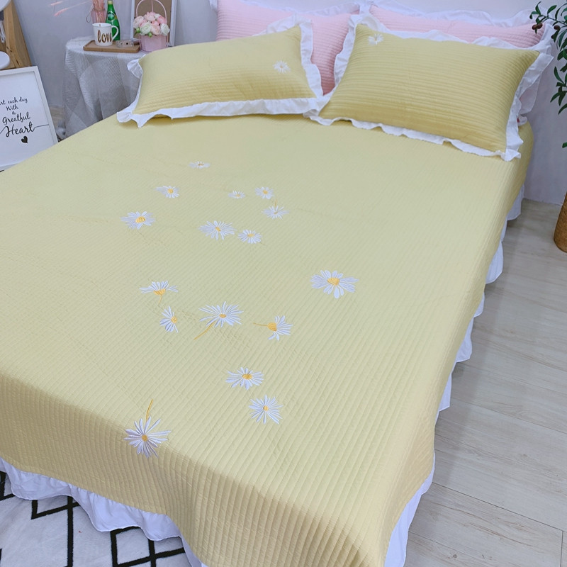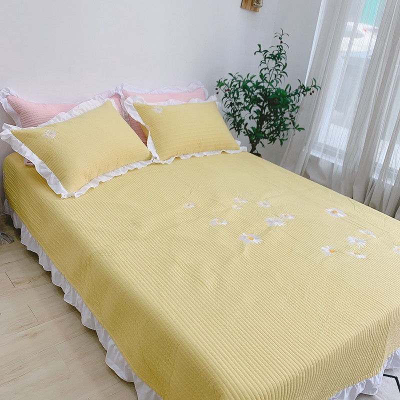 漫调 2022新款ins风韩版床盖三件套 小雏菊姜黄