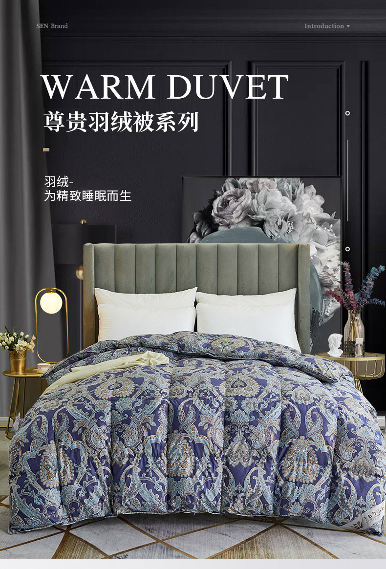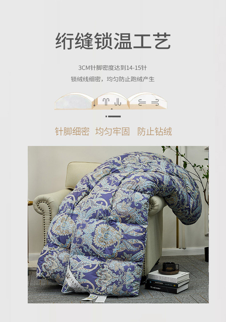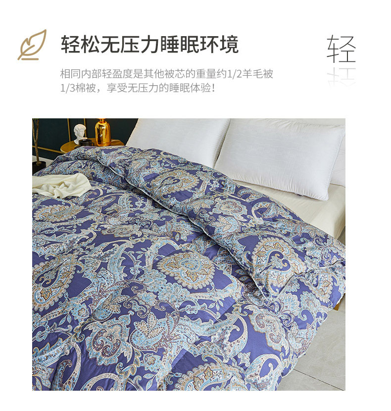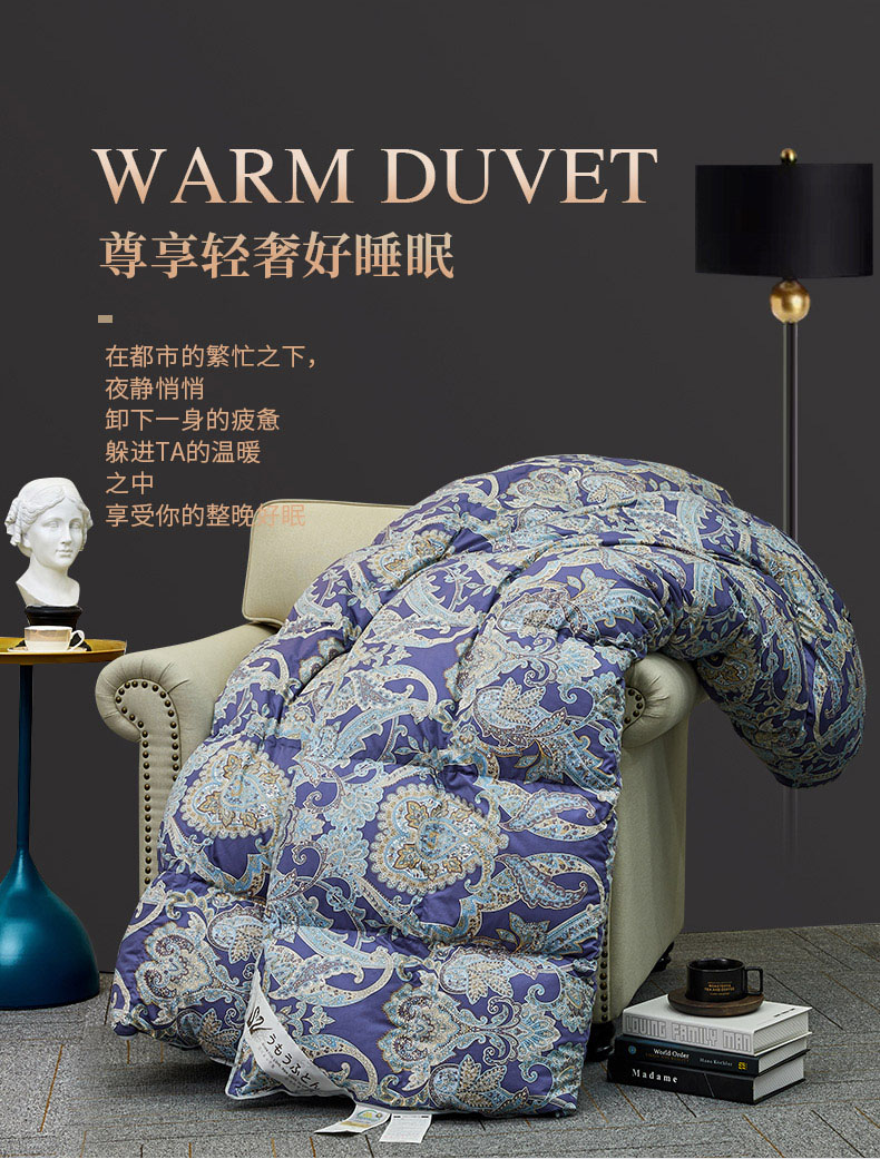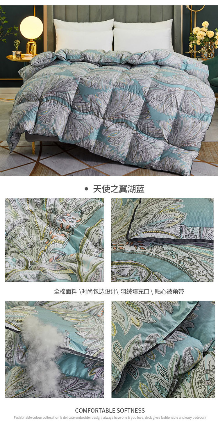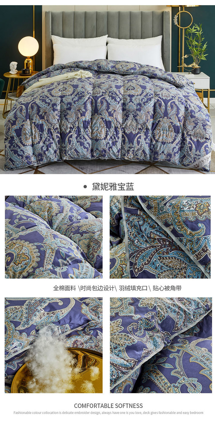 商品名称:绒研羽绒 2025新款60支柔赛丝印花羽绒被冬被 黛妮雅宝蓝
